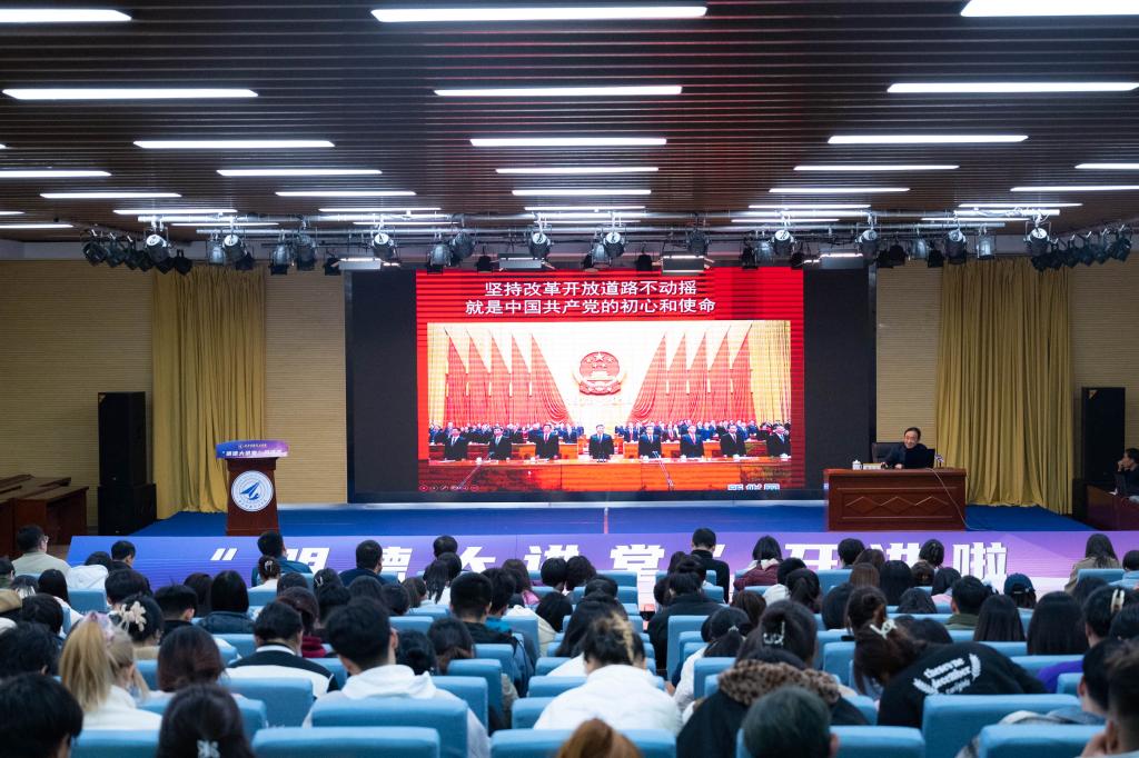 本次明德大讲堂由学校党委组织宣传部、党委学生工作部、校团委、马克思主义学院共同举办。学校领导,党委学生工作部,学生代表等500余名师生现场聆听了报告会。