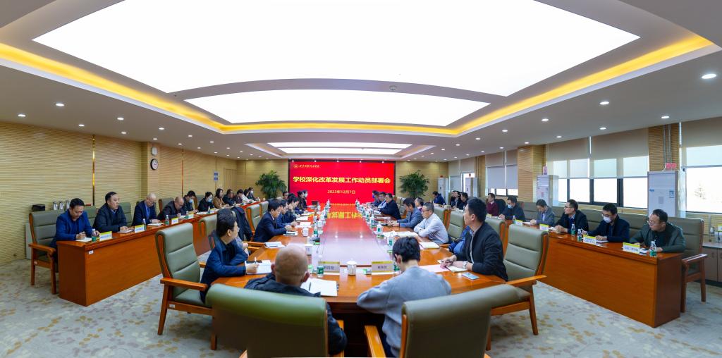 12月7日下午,学校在明志楼第一会议室召开深化改革发展工作动员部署会。全体校领导,各职能部门、教辅单位、二级学院党政负责人参加会议。会议由校党委书记阎东明主持。