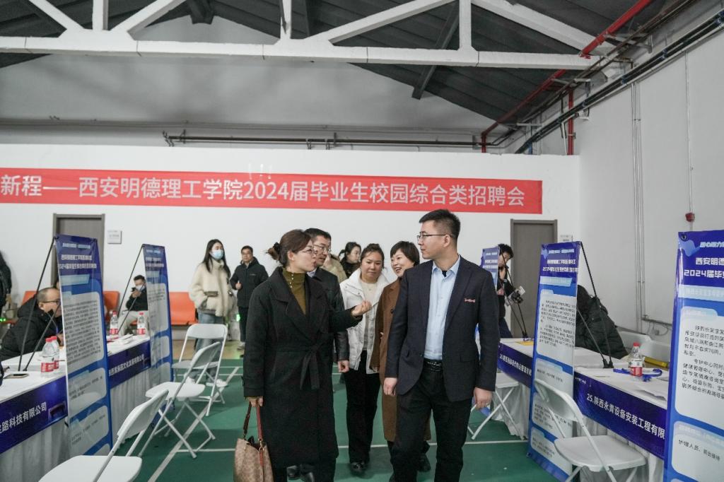 随后,学校副校长刘星、艺术与设计学院院长苟秉宸、莲湖区人社局及青年路街道办领导在学校招生就业中心人员的陪同下深入毕业生就业能力提升训练营、招聘会现场了解就业能力提升活动及招聘会现场情况。副校长刘星表示学校将积极利用就业服务驿站这一平台,为毕业生就业创业提供全链条帮扶,实现政府、企业、学校同向发力、同频共振,为毕业生高质量充分就业保驾护航。