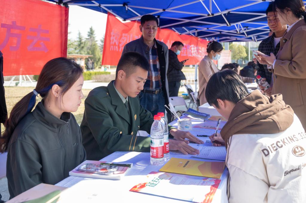 招聘会现场特别设置了长安区高校就业服务驿站、求职服务专区、征兵政策咨询区,不仅邀请了经验丰富的就业指导教师现场为毕业生提供就业政策咨询、简历指导等特色服务,还邀请了学校武装部为意向学生讲解军队文职、应征入伍等相关政策,受到了学生的广泛好评。