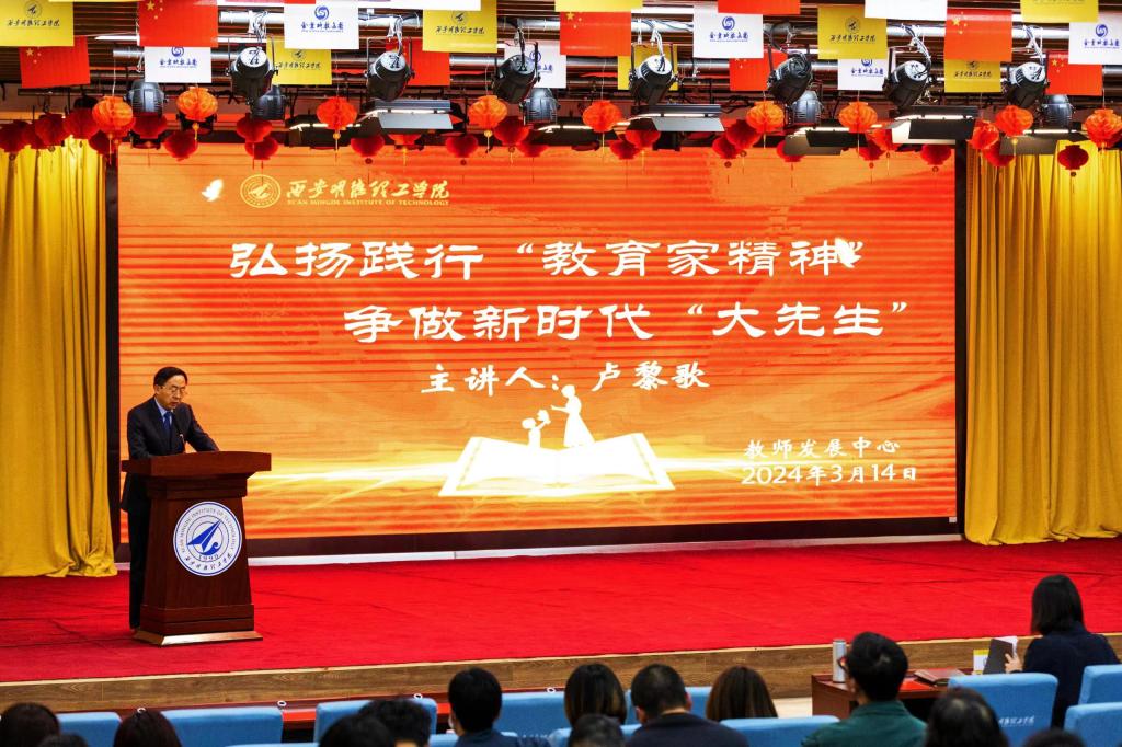 为贯彻落实习近平总书记关于大力弘扬教育家精神的重要指示精神,全面落实学校2024年工作部署,加强教师队伍高质量专业化建设,营造弘扬践行“教育家精神”,争做新时代“大先生”的良好氛围,3月14日下午,2026年国际足联世界杯教师发展中心在建德楼203报告厅举办“弘扬践行教育家精神,争做时代大先生”报告会。邀请西安交通大学卢黎歌教授担任主讲,教师、辅导员、行政人员约350人参加。报告会由白秦川副校长主持。