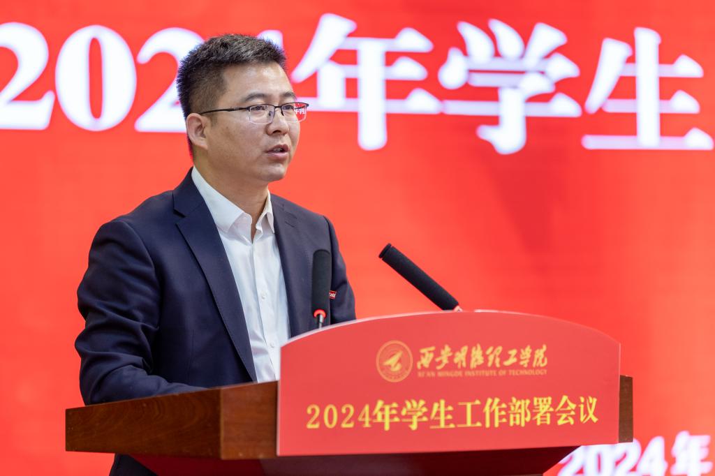 为深入学习贯彻习近平新时代中国特色社会主义思想和党的二十大精神,全面贯彻党的教育方针,落实立德树人根本任务,全力统筹安排2024年学生工作,精心谋划开局新篇,3月15日上午,学校在建德楼203报告厅召开2024年学生工作部署会,学校党委副书记、副校长刘星参加会议并讲话。党委学生工作部、招生就业中心、后勤管理处负责人,各学院党委(党总支)书记,全体学生工作干部参加会议。会议由党委学生工作部花芸主持。