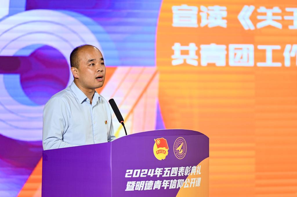 学校团委书记童杨梓宣读《关于表彰2023-2024学年共青团优秀个人和先进集体的决定》。