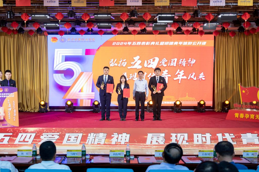 党委书记阎东明为共青团工作先进个人、陕西省大学生自强之星、陕西省优秀共青团员获得者颁奖。