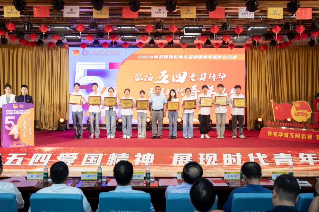 党委副书记、副校长刘星为优秀共青团员、优秀共青团干部、优秀学生会干部、魅力团支书、优秀青年志愿者、新媒体先进个人、优秀社长等获奖代表颁奖。