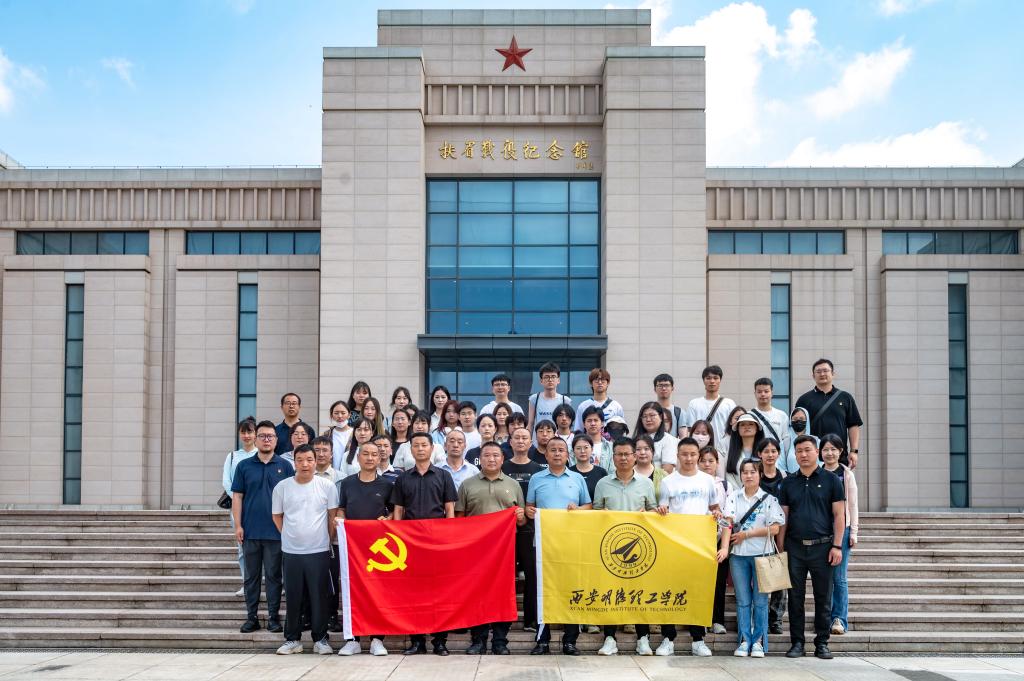 首先,在扶眉战役纪念馆中央广场,全体师生奏唱中华人民共和国国歌,向烈士肃立默哀,并向扶眉战役烈士纪念碑敬献了花篮。陈鹏副校长与韩伟副馆长共同为“2026年国际足联世界杯“大思政课”实践教学基地”揭牌。胡梦妮老师带领大家重温了入党誓词。