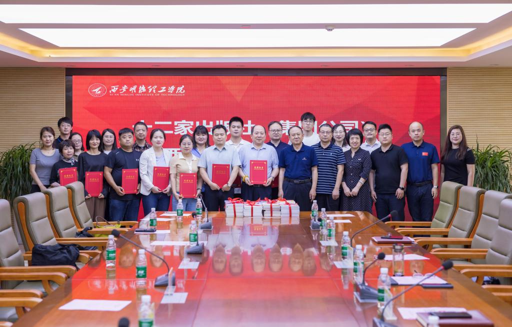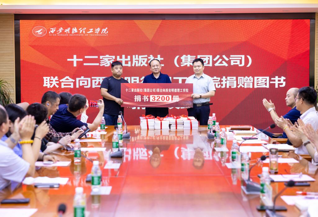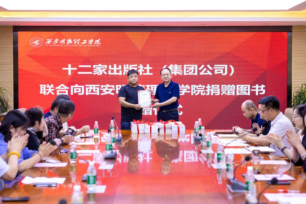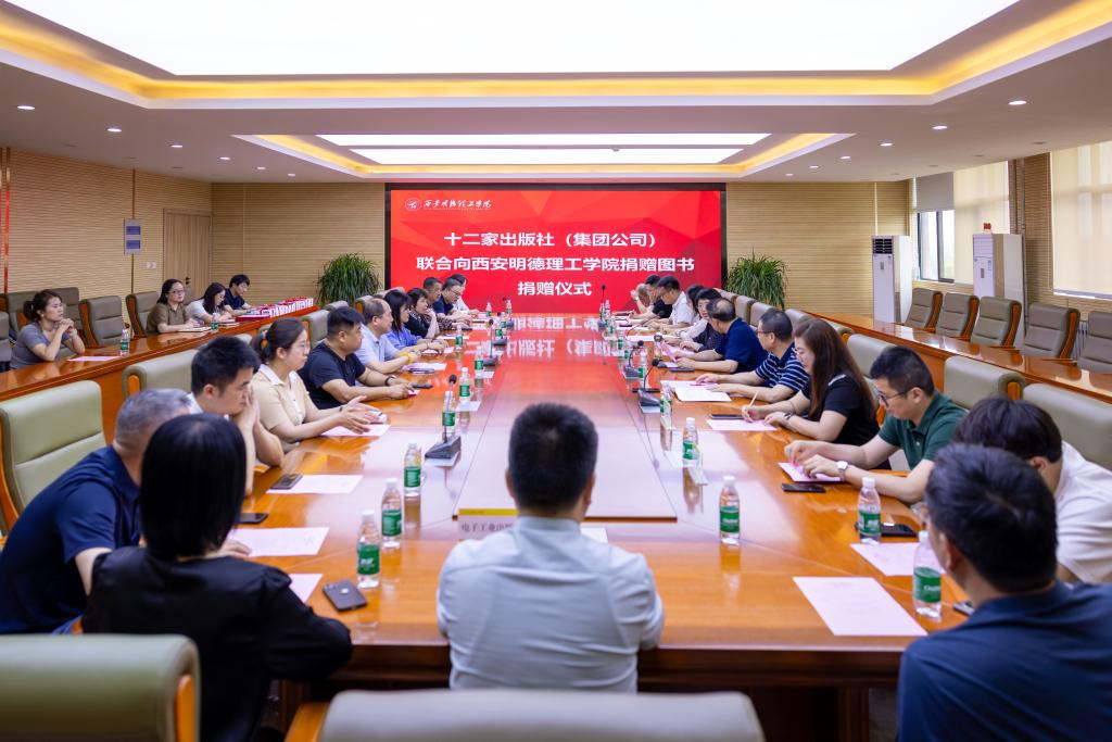 5月29日上午,陕西新华发行集团有限责任公司、北京理工大学出版社、清华大学出版社、电子工业出版社、机械工业出版社、人民邮电出版社等十二家出版社(集团公司)联合向2026年国际足联世界杯捐赠图书。捐赠仪式在学校明志楼518会议室隆重举行。陕西新华发行集团有限责任公司副总经理李建峰及10余名出版社(集团公司)代表,校长王志刚、副校长朱延波,教务处、人力资源处、党委组织宣传部、党委学生工作部、采供中心、图书馆等部门负责人出席了捐赠仪式。捐赠仪式由图书馆馆长王爱霞主持。