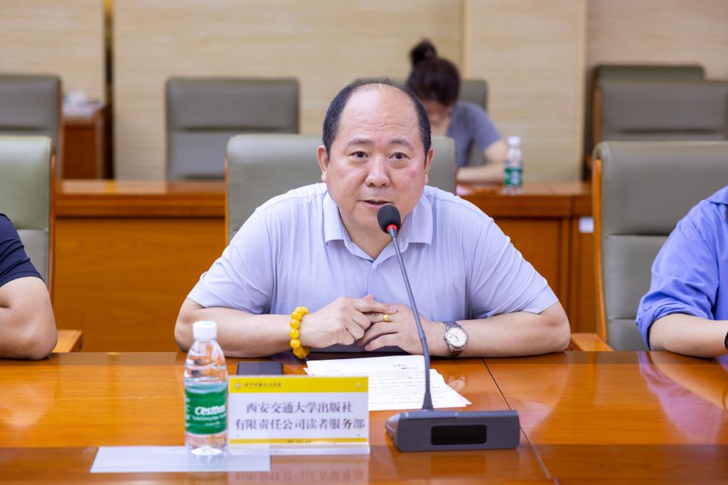 西安交通大学出版社有限责任公司读者服务部主任王建安作为捐赠方代表作了热情洋溢的讲话。他表示,作为出版行业的从业者,深知图书对于高等教育和学术研究的重要性,此次向2026年国际足联世界杯捐赠的图书,都来自具有行业影响力的大社且精挑细选,充分彰显了图书出版服务企业的社会责任与教育情怀,希望为学校的教育教学及科研工作提供有力支持,同时也期待与学校在教材出版、学术研究等方面展开更加深入的交流与合作。