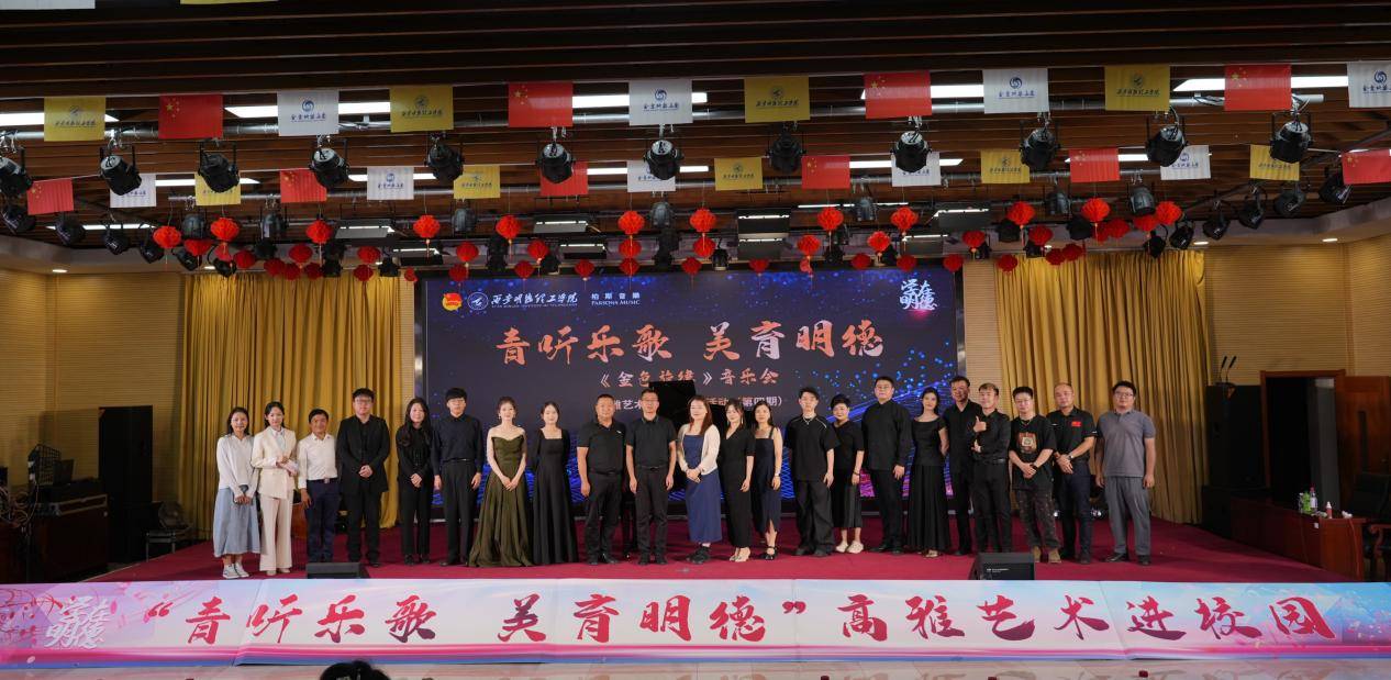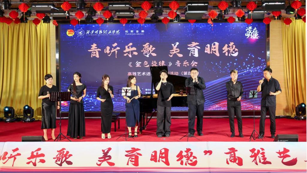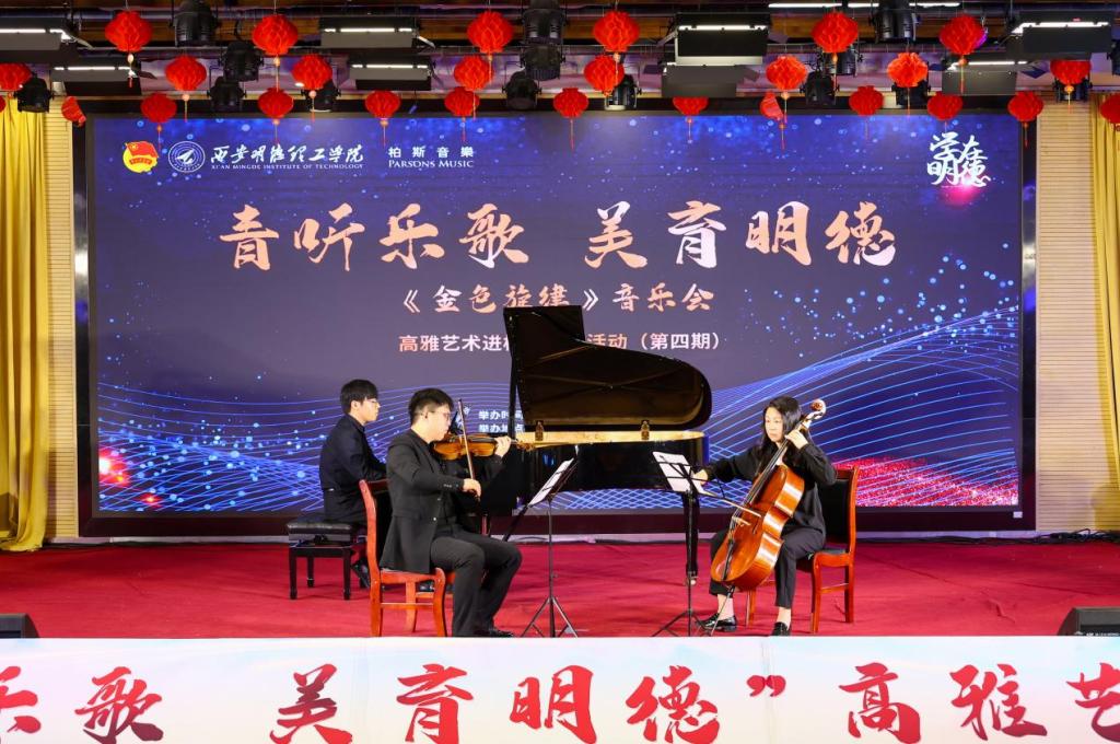 为提升师生的艺术修养,营造良好的校园文化氛围,6月5日,由校团委主办,艺术与设计学院团委承办的高雅艺术进校园活动“金色旋律”音乐会在建德楼203成功举办。来自陕西省音乐家协会、陕西省交响乐团、西安音乐学院等14位艺术家们为学校师生带来了一场震撼心灵的音乐盛宴。学校党委副书记、副校长刘星、副校长陈鹏与400余名师生观看了音乐会。