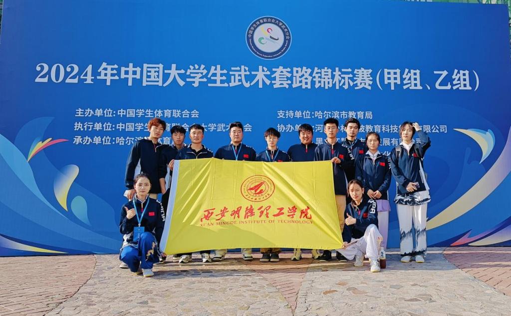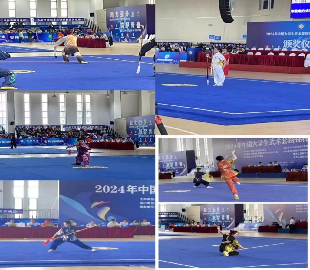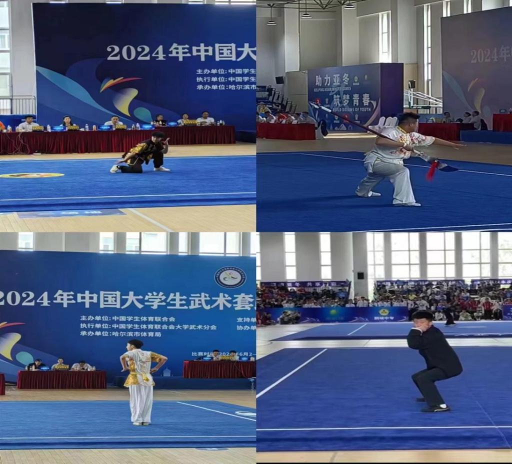 6月2日—6月9日,2024年中国大学生武术套路锦标赛在哈尔滨华德学院体育馆举行,来自全国的256支队伍2000余名运动员在这里上演一场“武林盛宴”。世界杯官网通识教育学院体育教研室李鑫、孙鹏老师带领校武术训练队10名学生参加此次比赛。