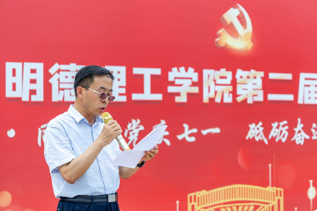 为庆祝中国共产党成立103周年,扎实开展党纪学习教育,6月20日下午,由学校党委组织宣传部主办、校团委协办的“同心向党庆七一·砥砺奋进新征程”第二届党旗接力赛在中心广场举行。校党委副书记、纪委书记、副校长白秦川,党委组织宣传部部长高超,各二级学院党委(党总支)书记、副书记,相关单位负责人及学校各参赛代表队师生参加开幕式。来自各二级学院、职能部门和教辅单位的18支参赛队伍精神饱满、信心十足,展现了明德人良好的精神风貌。开幕式由党委组织宣传部副部长张亚平主持。
