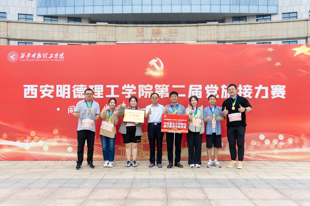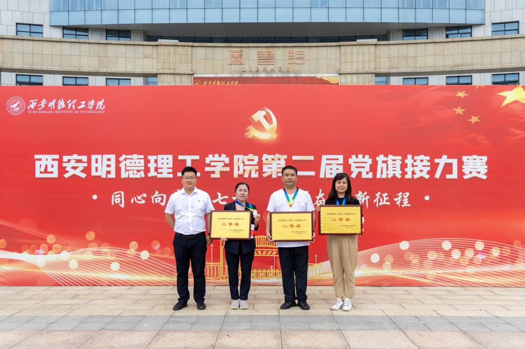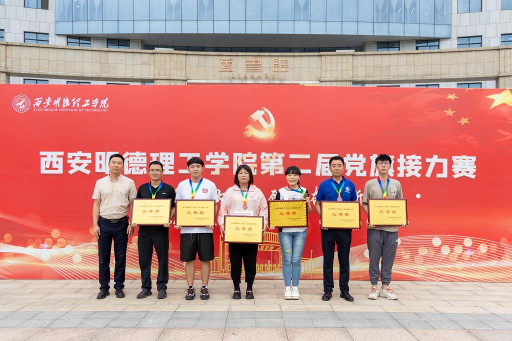 经过激烈比拼,马克思主义学院与通识教育学院党委“党旗引领筑梦明德队”获得一等奖,艺术与设计学院党委“艺启翱翔队”、机关党委“党心筑梦队”“红帜疾风队”获得二等奖,智能制造与控制技术学院党委“智控学院一队”“智控学院三队”、信息工程学院党委“旗帜领航队”“努力向前队”、艺术与设计学院党委“奔天揽月队”、机关党委“红旗飘飘队”获得三等奖。