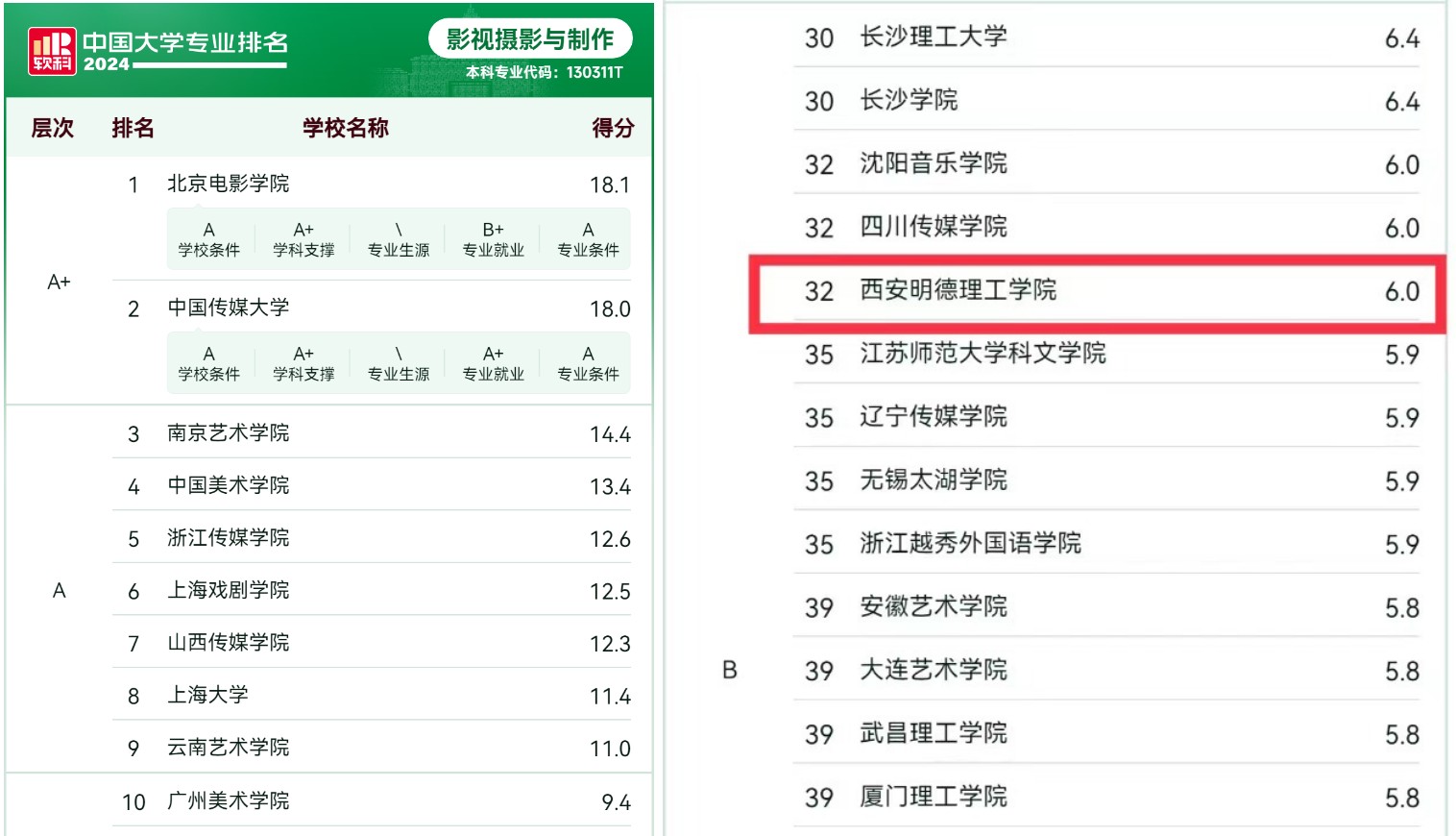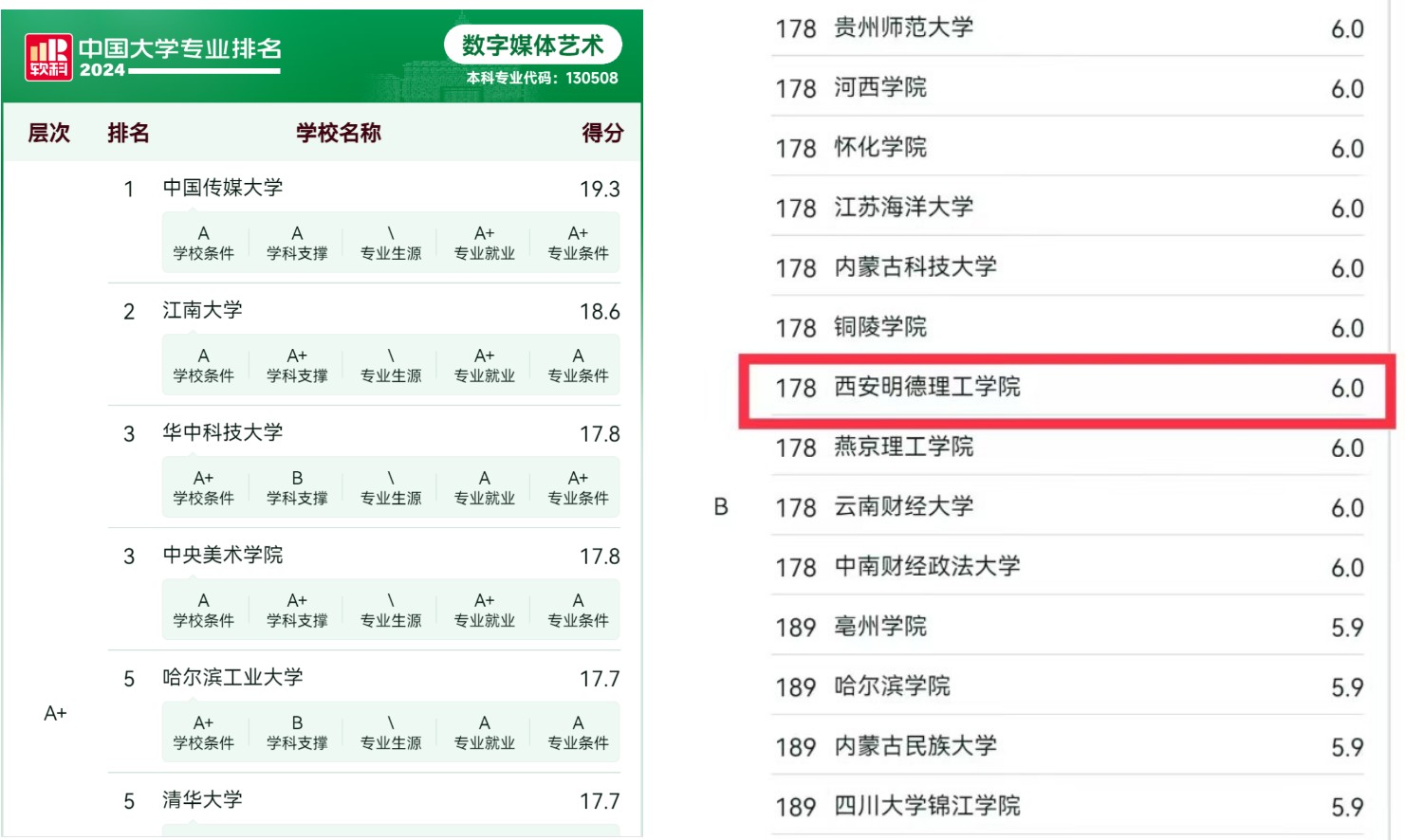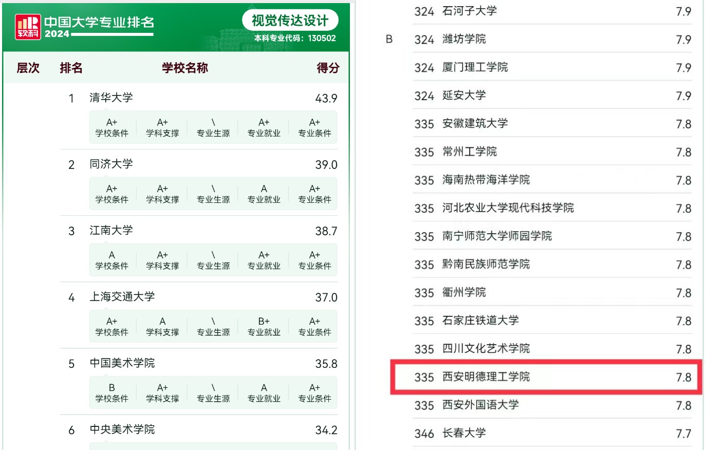 2024年6月13日,高等教育专业评价机构上海软科正式发布了“2024软科中国大学专业排名”,世界杯官网本科专业建设取得新突破,艺术与设计学院五个艺术类专业全部上榜“2024软科排名”,三个专业位居陕西民办院校第一名!