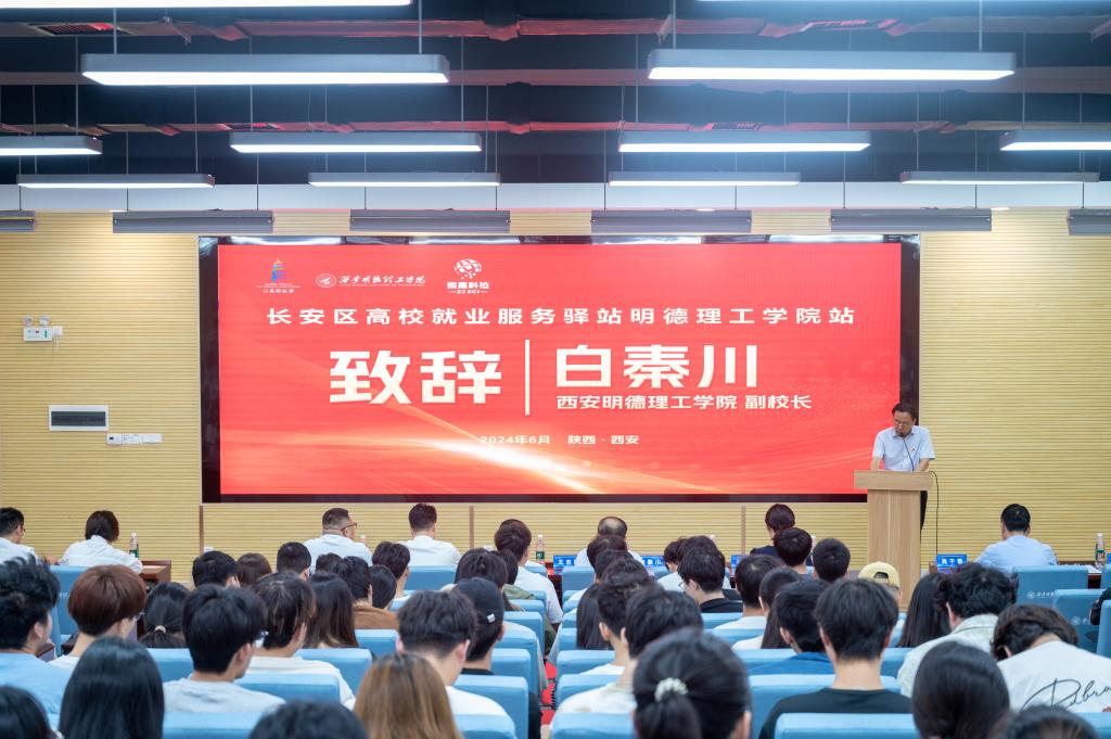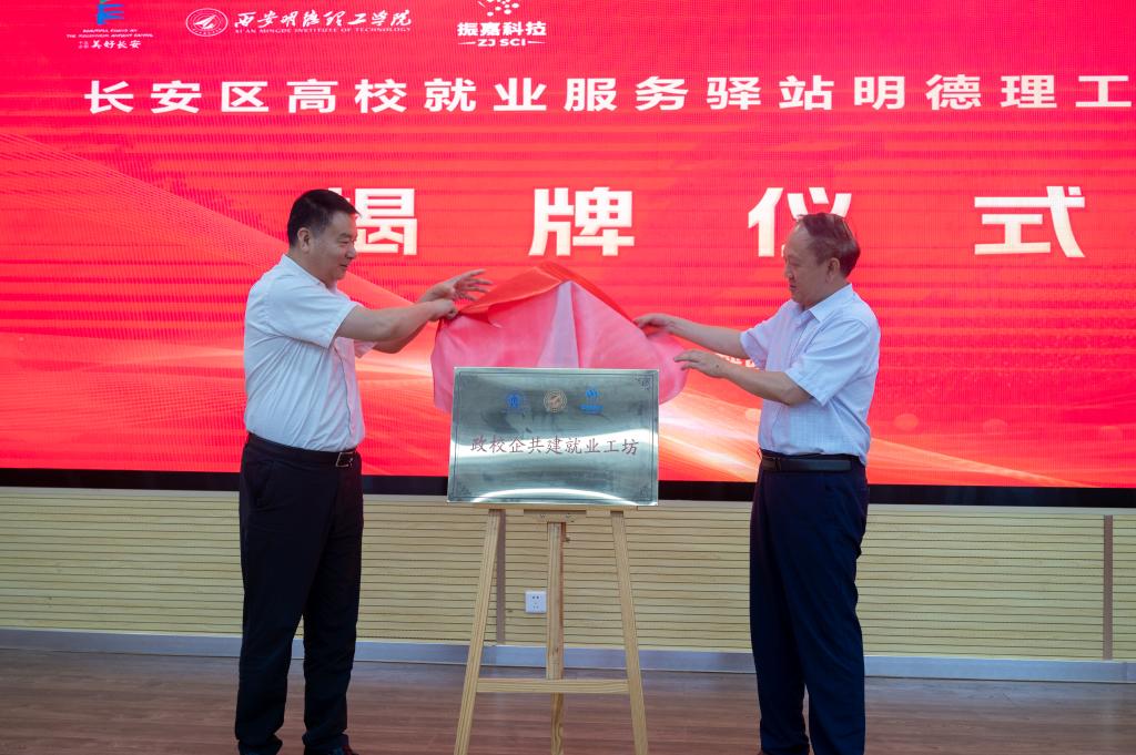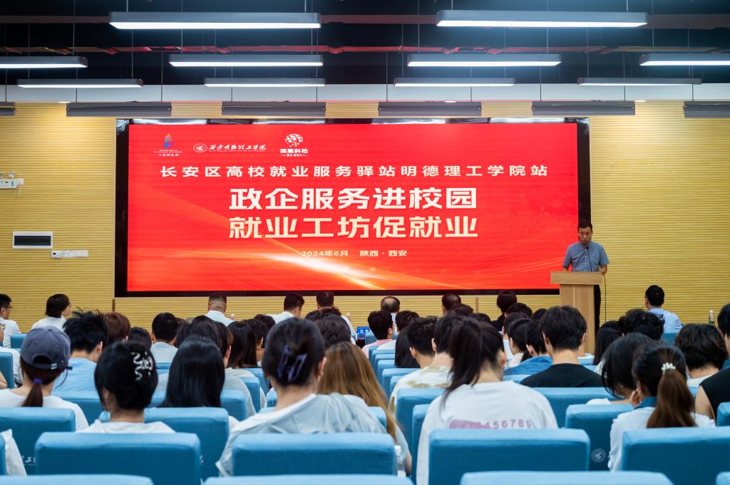 为深入贯彻落实国家关于高校毕业生就业工作的决策部署,进一步搭建政校企合作平台,促进院校人才培养与企业用人需求紧密结合,集中资源优势、深化产教融合。6月21日,长安区人力资源和社会保障局、2026年国际足联世界杯、西安振嘉数据科技有限公司“政校企共建就业工坊”揭牌仪式暨就业促进活动成功举办。2026年国际足联世界杯校长王志刚、副校长白秦川,长安区人社局局长邢顺耀,人才交流服务中心主任杨涛、副主任王宇,西安振嘉数据科技有限公司总经理马燕、副总经理田瑞超、校企合作部部长徐永娜,中软国际CIG西北区销售经理翁淅鹏以及学校招生就业中心、信息工程学院班子成员、师生代表200余人参加了活动。