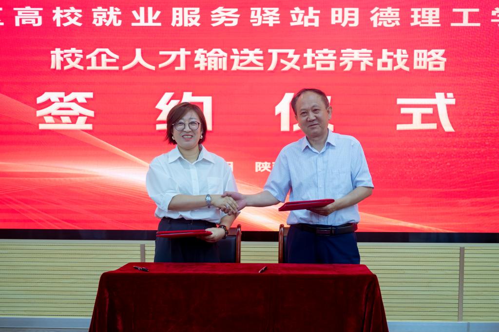 揭牌仪式上,王志刚校长和邢顺耀局长共同为信息工程学院“就业工坊”揭牌,王志刚校长和马燕总经理共同签订校企合作产教融合共建实践与人才基地合作协议。
