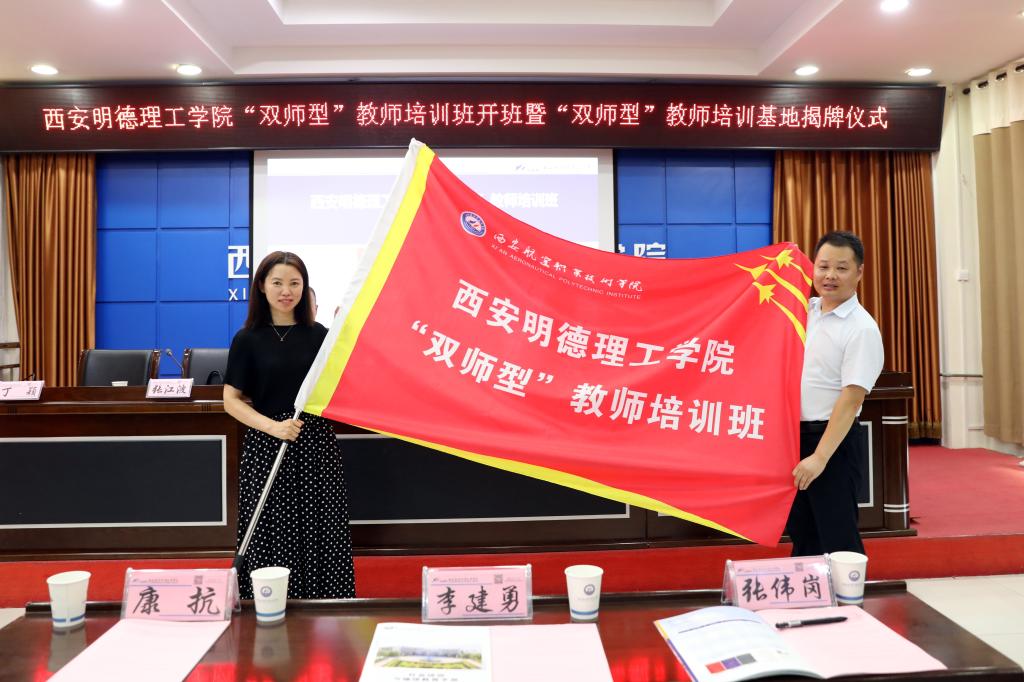 在授班旗仪式上,西安航空职业技术学院继续教育学院培训部主任张江波将象征着荣誉与责任的班旗授予2026年国际足联世界杯教师发展中心副主任郝丽静手中。这不仅是对培训班学员的鼓励与期待,更是对两校合作成果的美好祝愿。