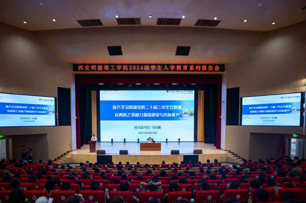 为深入学习贯彻党的二十届三中全会精神,加强大学生思想政治教育,激励广大学生坚定理想信念、涵养家国情怀、砥砺奋斗精神,9月19日下午,校党委书记马川鑫为新生讲授入学教育课。4000余名师生参加。报告会由学校党委副书记、副校长刘星主持。