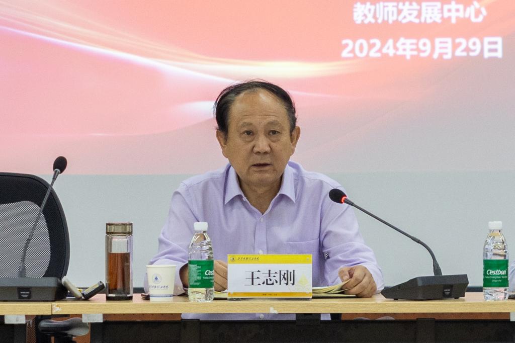 会上,校长王志刚围绕如何建设高素质专业化教师队伍,分别从学校和教师两个层面提出了希望和要求。从学校层面,一是要坚定不移实施人才强校战略,牢固树立“三个第一”的理念;二是要认真贯彻落实学校“十四五”师资队伍建设发展战略规划;三是要深入研究新时代对高等教育及师资队伍建设提出的新要求;四是要客观分析学校转设以来教师队伍建设取得的成绩、存在的不足及改进的措施和思路;五是要加强制度建设,为教师成长发展搭建良好平台;六是要弘扬尊师重教优良传统,优化薪酬方案,为教师创造良好工作生活条件,使教师安心教学、精心教学;七是要实施教育家精神铸魂强师行动。从教师层面,一是要树立做“四有好老师”的职业理想和职业目标;二是要践行教育家精神,自觉加强教师职业道德修养;三是要注重教育教学能力提升,做“人师”与“经师”相统一的“大先生”;四是要强化质量文化意识,做质量文化的创造者、享受者;五是要弘扬优良教风,精心打造“教在明德”教风建设品牌;六是要积极投身教学评建工作,做教学评建工作的强力推动者和顺利通过合格评估的贡献者;七是要秉承明德校训,做具有“五方面”精神特质的明德师者。他强调,全体教师要深入学习贯彻全国教育大会精神,以教育家精神为引领,不断加强自身能力和本领,勇于担当,敢于创新,为学校高质量转型发展和本科合格评估贡献明德师者的智慧和力量,共同书写学校教育事业的新篇章。