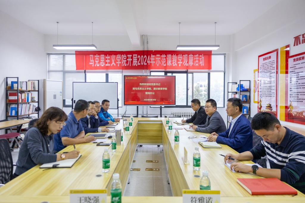 为落实立德树人根本任务,推动世界杯官网思想政治理论课改革创新,不断提高德智体美劳育人成效,提升马克思主义学院与通识教育学院建设质量。9月30日,学校党委书记马川鑫深入马克思主义学院、通识教育学院召开现场办公会,学校党委组织宣传部部长高超、学校办公室副主任刘书沛、组织科科长柴林陪同。马克思主义学院、通识教育学院领导班子、党委委员、办公室主任参加会议。