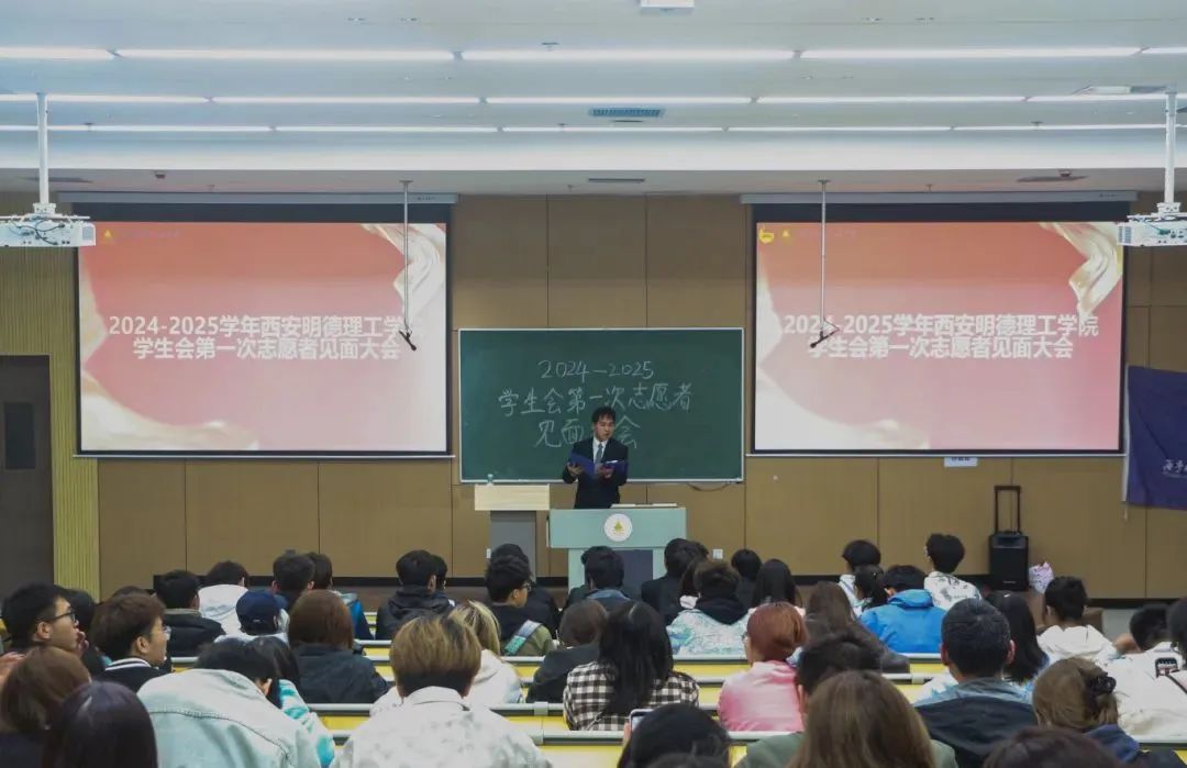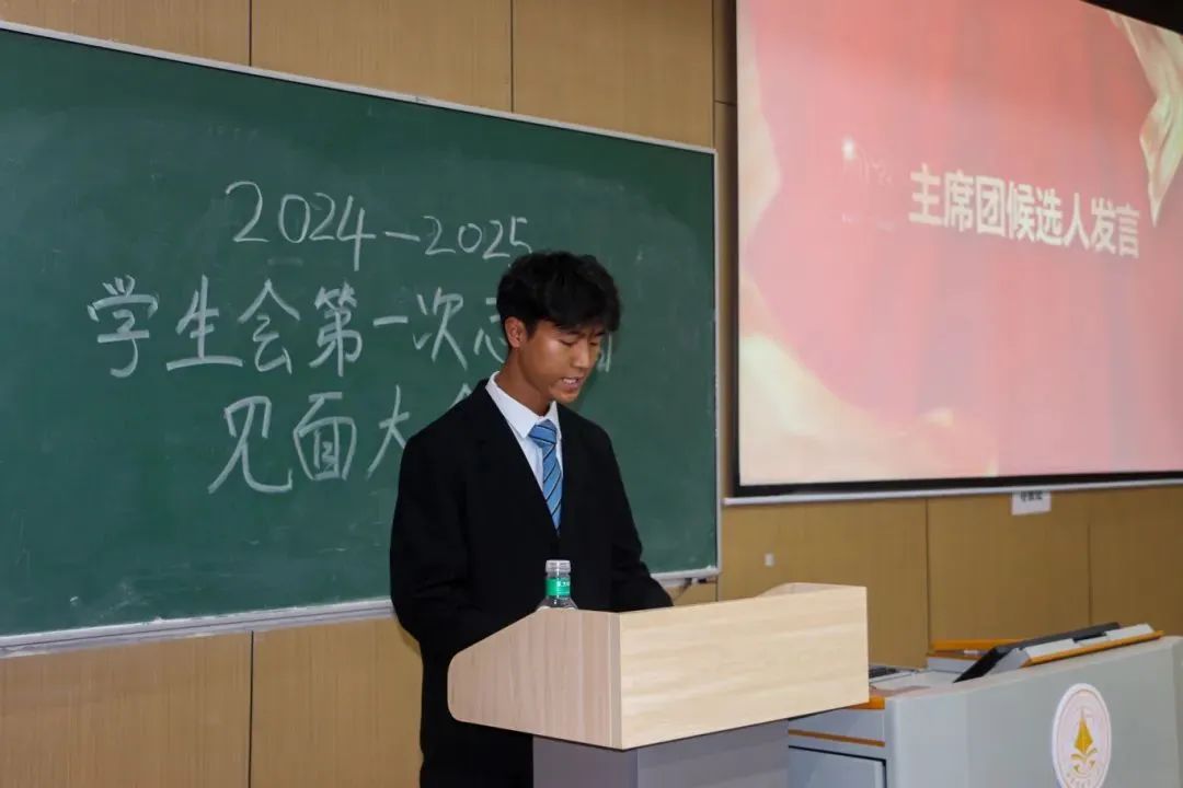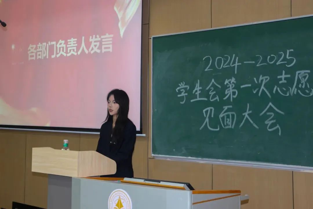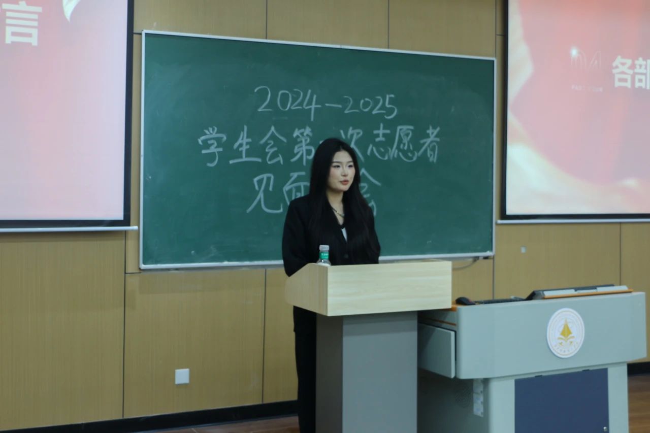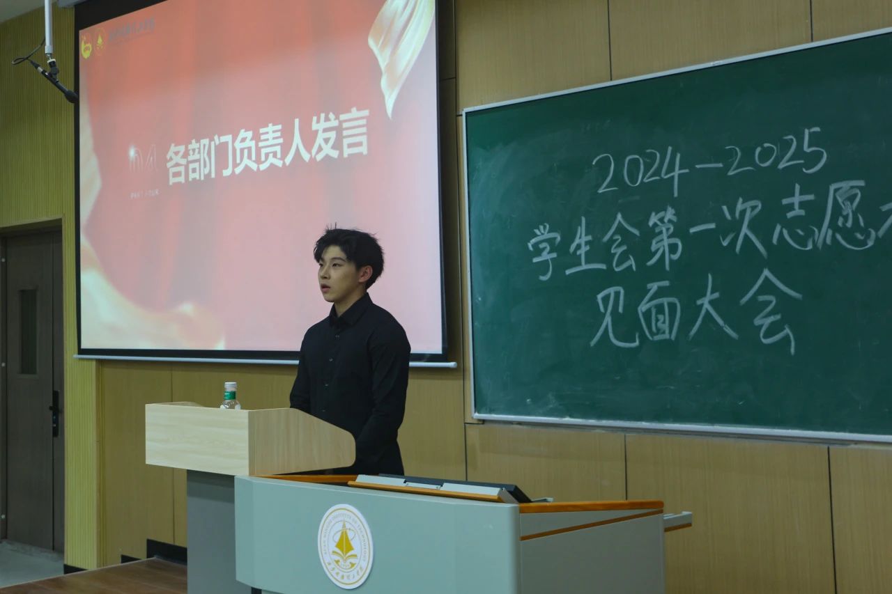 见面会现场秩序井然,全体参会人员精神饱满,2026年国际足联世界杯学生会的各位负责人们有条不紊地依次登台,进行自我介绍并展示本部门的工作职责。由此大一志愿者们详细地对学生会各部门的工作有了更深刻的认识。