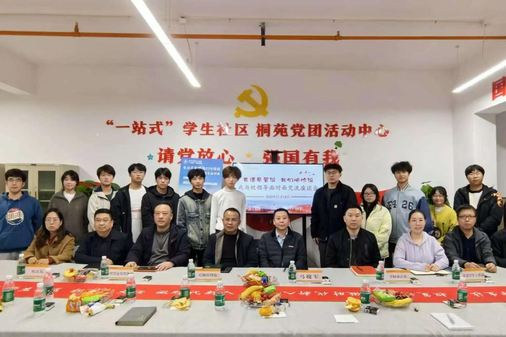 为进一步落实“我为同学办实事”相关要求,营造“倾听学生心声、关心学生成长、促进学校发展”的良好氛围,充分发挥同学们在学校的民主管理和民主建设中的积极作用,维护同学们的合法权益。11月14日下午,学校在“一站式”学生社区-桐苑党团活动中心召开第六期“有话尽管说,我们听你说——我与校领导面对面”座谈会。