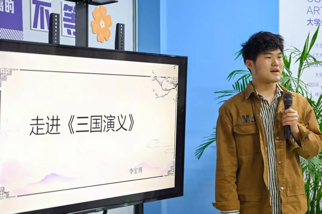 李宏博同学带来经典名著《三国演义》的分享,带大家重回那个英雄豪杰辈出、战火硝烟弥漫的乱世,领略古人在政治、军事斗争中的智慧谋略,以及忠义仁勇的精神品质。他还将三国智慧与现实相联,如曹操战败、刘备求贤对当下的启示,启发同学们从历史中汲取智慧。