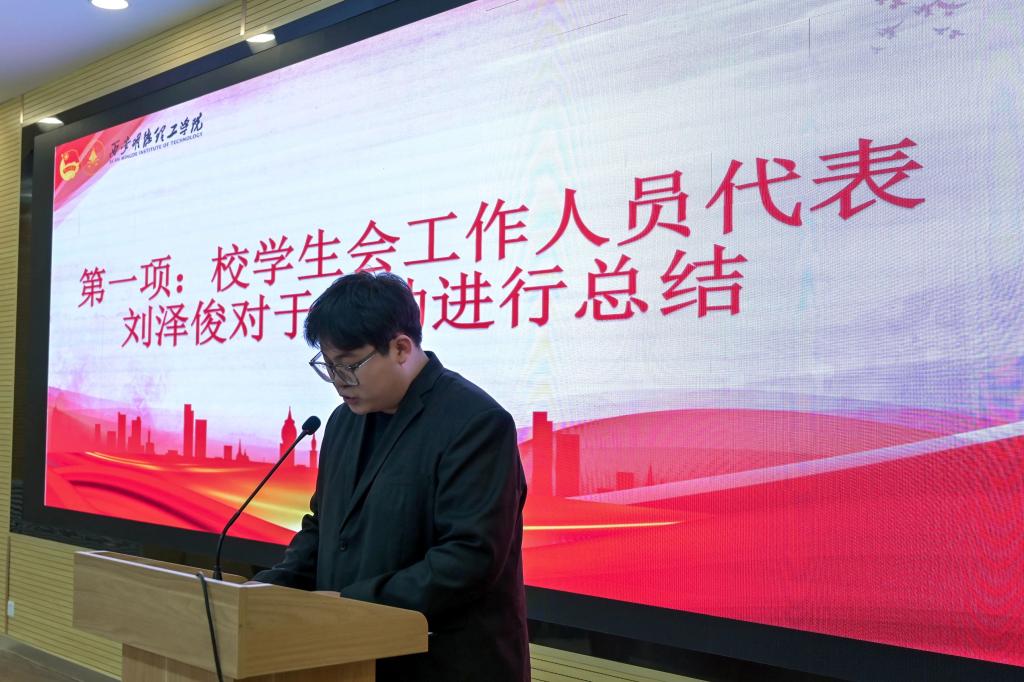 首先,校学生会工作人员代表、学术部负责人刘泽俊对本次活动进行总结。他指出,本次晨读打卡活动自启动以来,得到了全校学生的积极响应,参与人数众多。在21天的打卡过程中,同学们克服了早起的困难,坚持每日晨读,形成了良好的学习风气。刘泽俊还展示了活动期间的各项数据,如参与人数、打卡完成率等,直观地呈现了活动的成效,同时肯定了他们在活动中的积极态度和优秀表现。