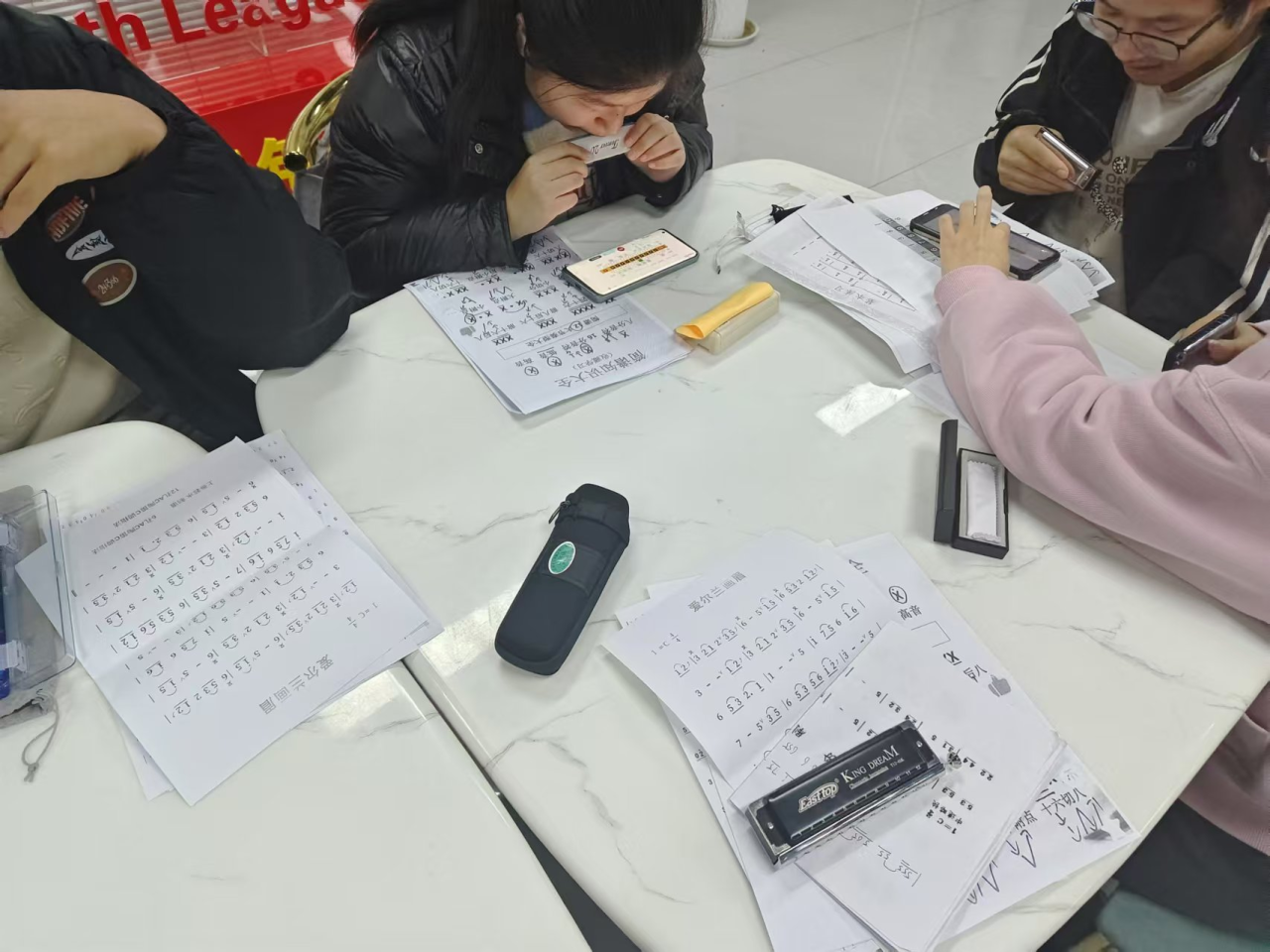 12月举办了一系列丰富多彩的活动,吸引了众多社员积极参与,进一步推广了口琴文化,提升了社团凝聚力,社员们纷纷上台分享自己近期练习的成果,互相交流演奏心得、技巧和感受,现场气氛热烈而融洽,营造出了浓厚的音乐交流氛围。