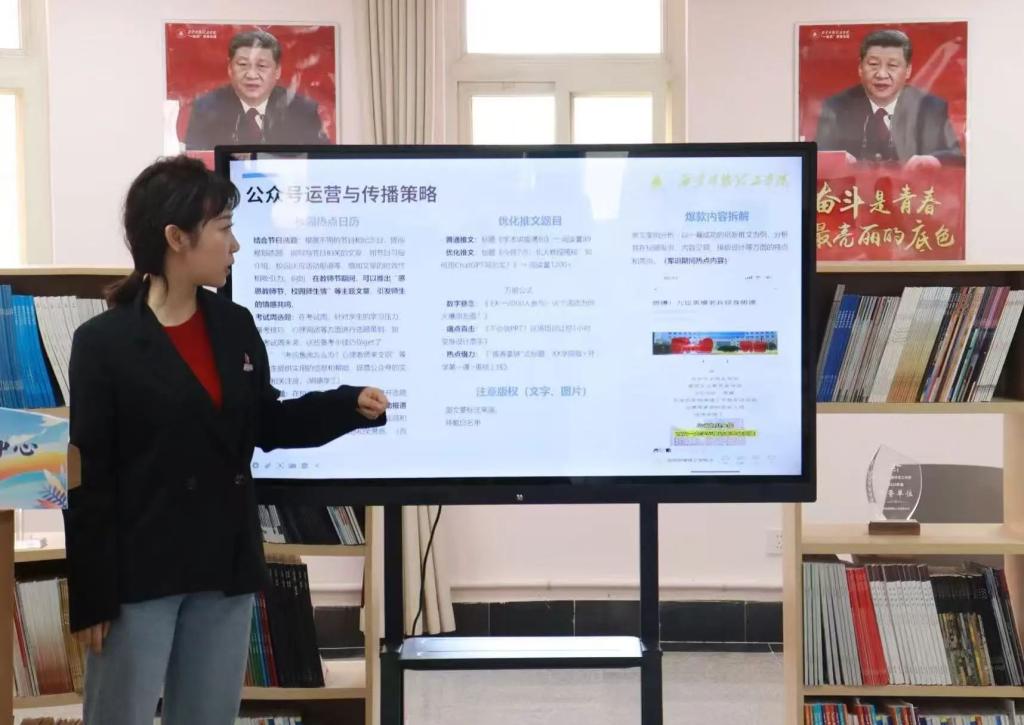 在网络信息发达时代,王悦琳老师认为可以依托大数据分析,建立个性化推送策略,将内容精准投放至目标群体。例如,对关注学科知识领域的同学推送前沿技术动态,对爱好体育学生定向推送体育新闻,提升内容匹配度。同时,结合不同平台用户活跃时段,在微信公众号的晚间黄金时段推送深度文章,在碎片化时间发布趣味短视频,最大化传播效果。