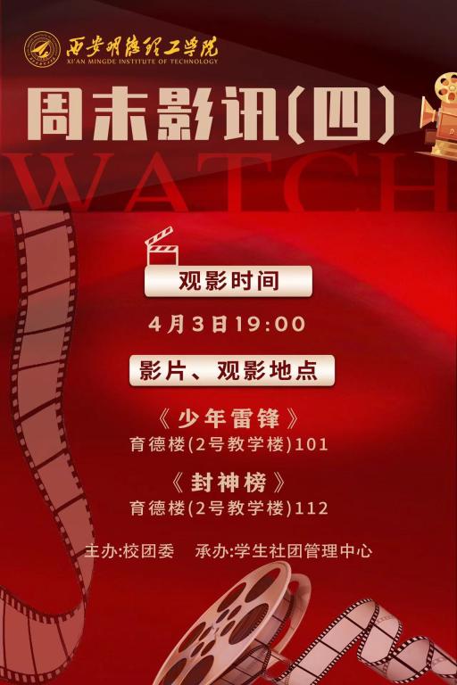 为丰富校园文化生活、缓解压力,号召明德学子学习雷锋精神,学生社团管理中心在周末进行电影《少年雷锋》《封神榜》的展播。每晚为校园文化艺术节进行排练,召开社团文化节排练主要负责人开会。
