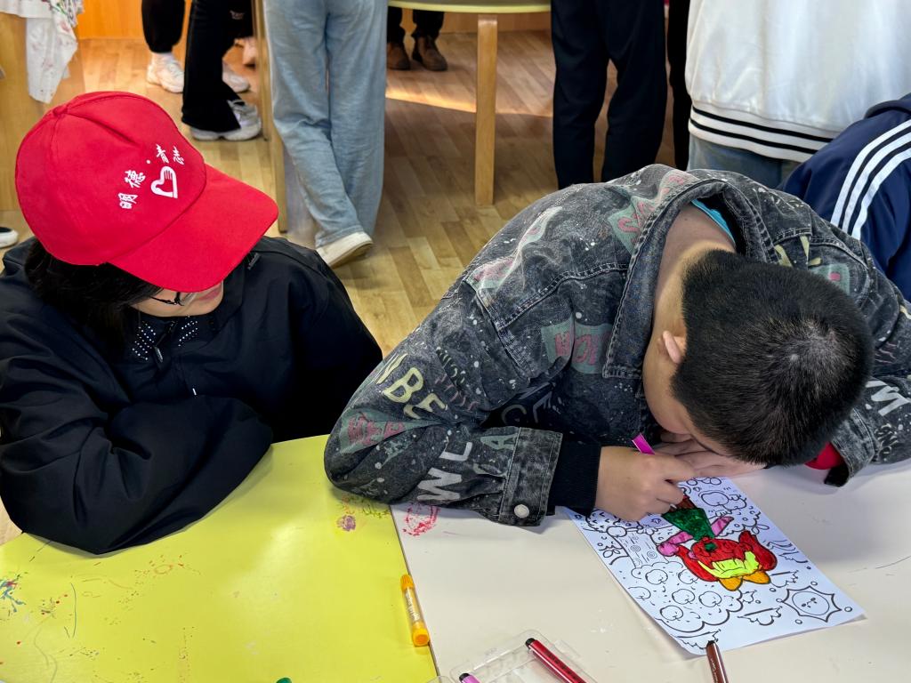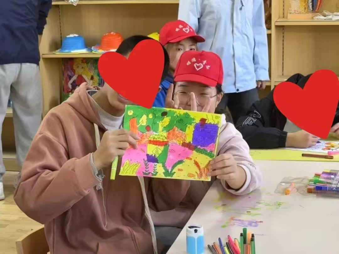 活动的最后,志愿者们为孩子们递上画笔和画纸,耐心地在一旁指导着。孩子们拿起画笔,或大胆或羞涩地在纸上涂抹着色彩,描绘着他们心中那独一无二的美好世界。一幅幅充满童趣的画作在孩子们的小手下诞生,每一笔每一划都可以让我们欣赏到他们眼里五彩斑斓与众不同的世界。