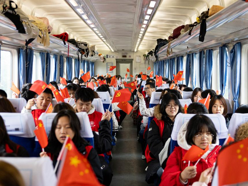 在前往延安的红色教育专列上,马克思主义学院的吴长川、胡梦妮两位老师为同学们讲授了一堂“行走的思政课”。老师们深入浅出地讲解了延安精神的内涵和时代价值,从延安时期艰苦卓绝的斗争环境,到革命先辈们坚定的理想信念和无私奉献精神;从延安整风运动对党的建设的深远影响,到延安精神在新时代的传承与发展。同学们认真听课,积极互动,在思考与交流中加深了对延安精神的理解和认识。专列上,师生们唱起了《我和我的祖国》、《明德之歌》,用歌声传递着对祖国的深情和对学校的热爱。