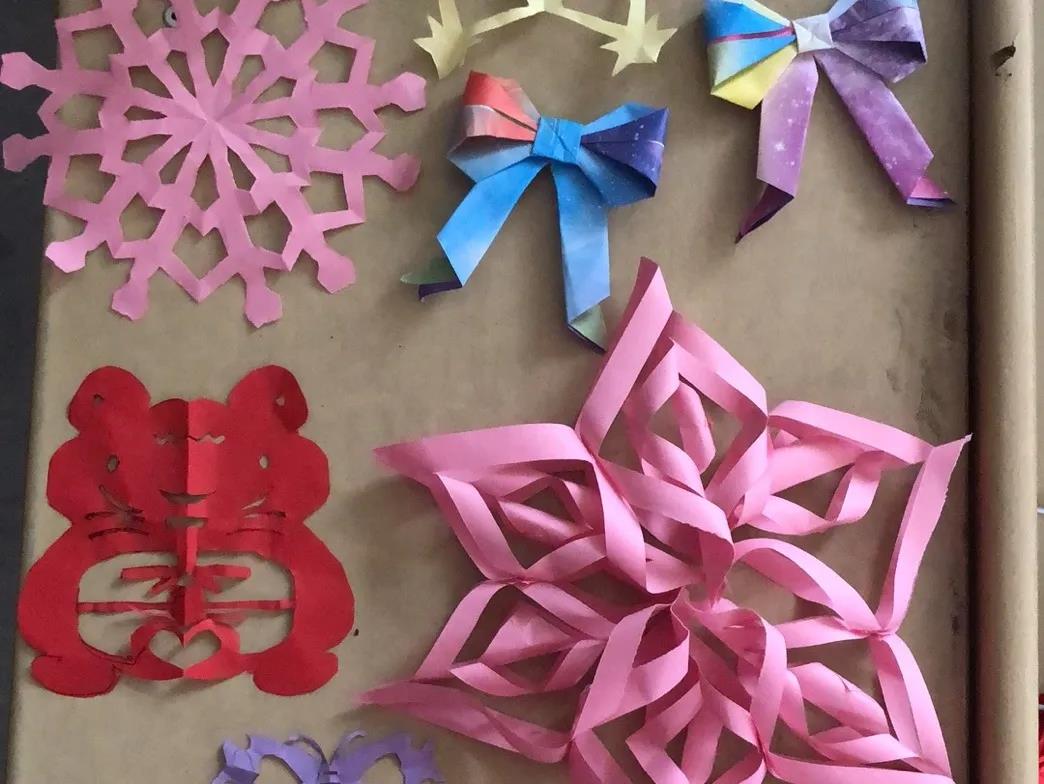 上午的剪纸教学十分成功,孩子们都在认真学习,做出的成品也都栩栩如生。