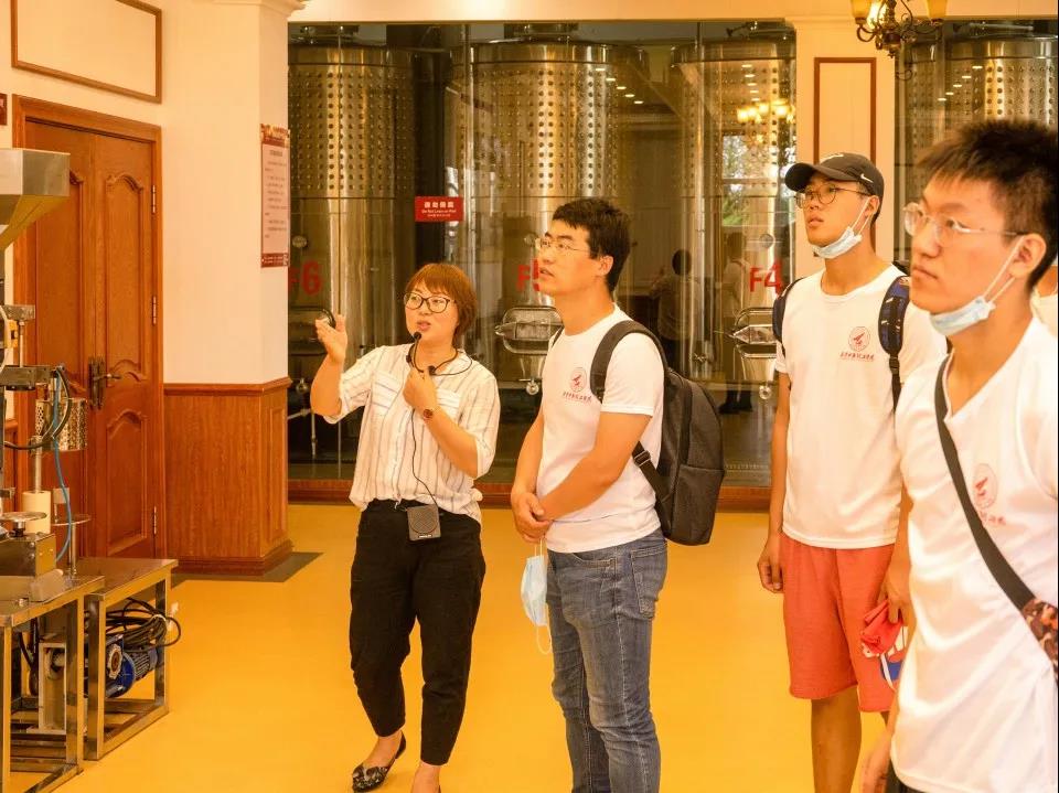 并在工作人员的带领下来到了园区内的酒庄,了解到了酒庄的历史文化,葡萄的品种、口感、各个部位的营养价值,和葡萄酒分类以及制作流程。