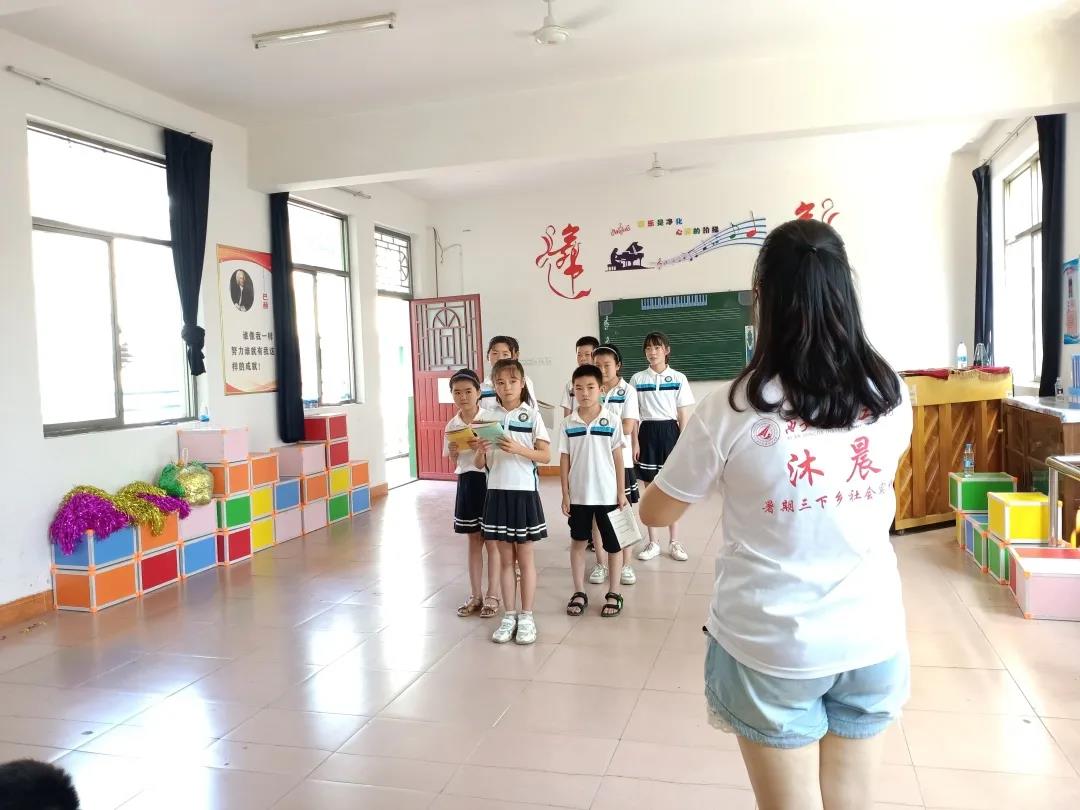 8月2日上午,“沐晨”暑期三下乡社会实践服务队和孩子们一起进行了朗诵、舞蹈、歌唱等练习,积极为下午的汇报表演做准备。