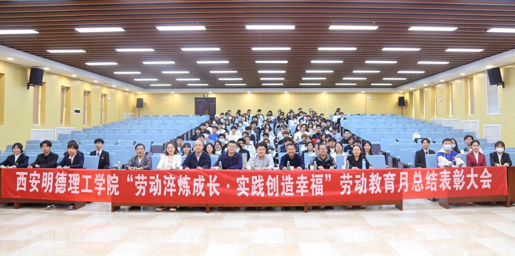 活动开始先播放了2022年11月至2023年3月期间开展宿舍文化节、宿舍萌宠设计大赛、最美劳动者摄影大赛、宿舍文明建设VLOG大赛等系列活动开展情况视频。校学生会轮值主席焦磊发言,他讲到“习近平总书记倡导我们要深刻理解劳动的价值、弘扬劳动精神,青年学生应在实践中不断成长”。获奖学生代表李官琛同学发言,他说:“青年大学生,应当积极参加劳动,用青春奋斗谱写人生华章。”现场嘉宾为劳动教育月优秀集体及先进个人进行了颁奖。马克思主义学院党委书记王君涛做了总结讲话,他讲到“劳动教育为决胜全面建成小康社会、夺取新时代中国特色社会主义伟大胜利、实现中华民族伟大复兴的中国梦提供了强大的思想引领和精神支撑。”倡导青年学生“要强化劳动观念,弘扬劳动精神;强调身心参与,注重手脑并用;继承优良传统,彰显时代特征;发挥主体作用,激发创新创造。”