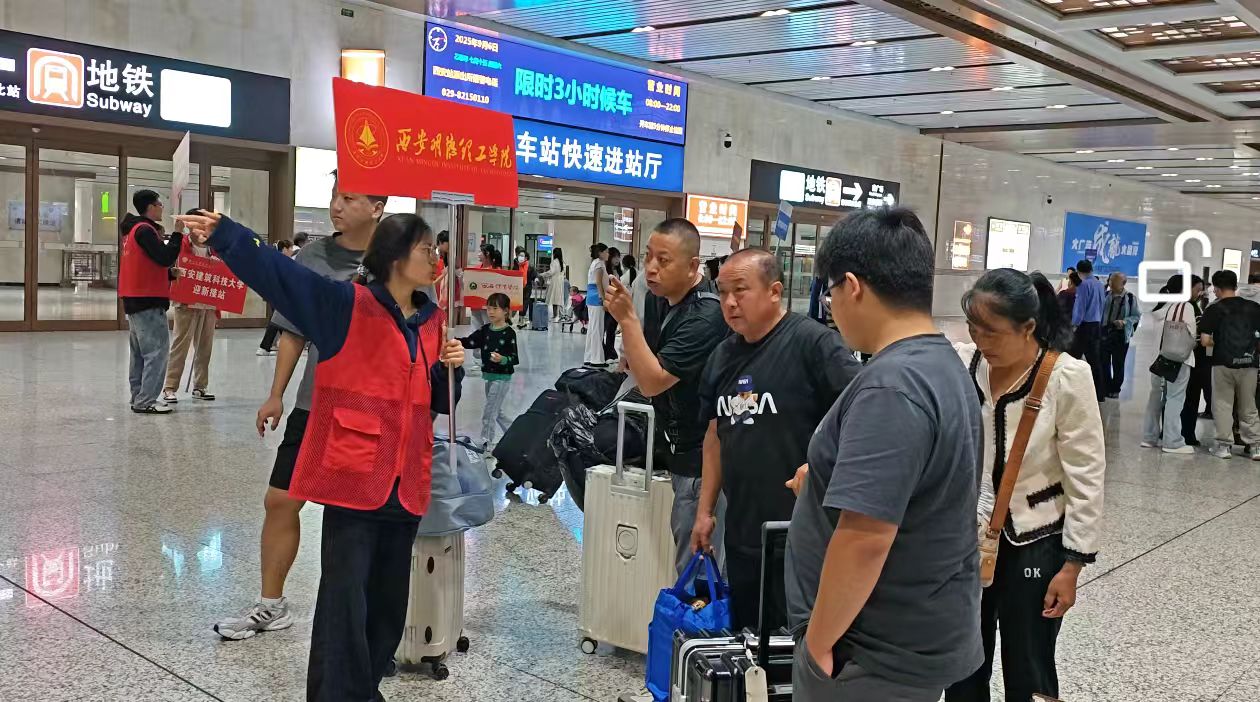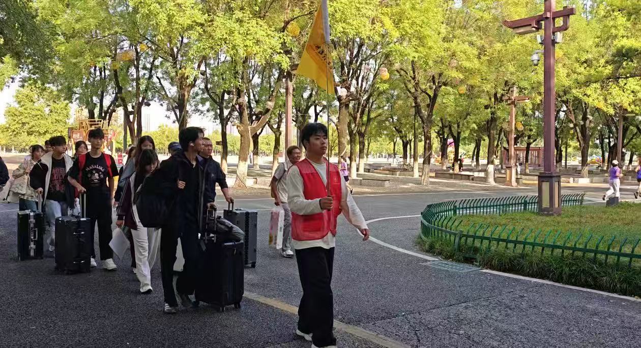 图书馆志愿服务组的志愿者们提前奔赴机场、高铁站、火车站及各大地铁站,化身“暖心摆渡人”。他们举着引导牌穿梭在人流中,主动接过新生手中沉重的行李,耐心讲解乘车路线,一路陪伴引导至校园,让新生从踏入城市的那一刻起,就感受到了归属感。