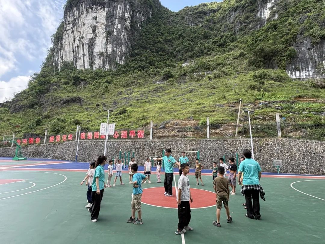 7月26日清晨,广西天等县龙岩社区的青空间比太阳更早醒来。孩子们在院子里围成圆圈,跟着志愿者胡宜浩喊出“逢七过”的口令,报数声、拍桌声、笑声混成一片。歌声随后响起,《左手右手》的旋律带着孩子们边唱边比画动作,稚嫩童声飘出窗棂,在山间上空回荡。当《歌唱祖国》的前奏响起,孩子们自觉起立,把右手放在胸口,小脸跟着节拍涨得通红,路过的壮族阿妈不禁驻足鼓掌,这一阵歌声像一把钥匙,轻轻拧开了孩子们原本羞怯的心锁,让他们第一次发现:大声唱、大胆笑,原来自己也能成为舞台中央最亮的那颗星。