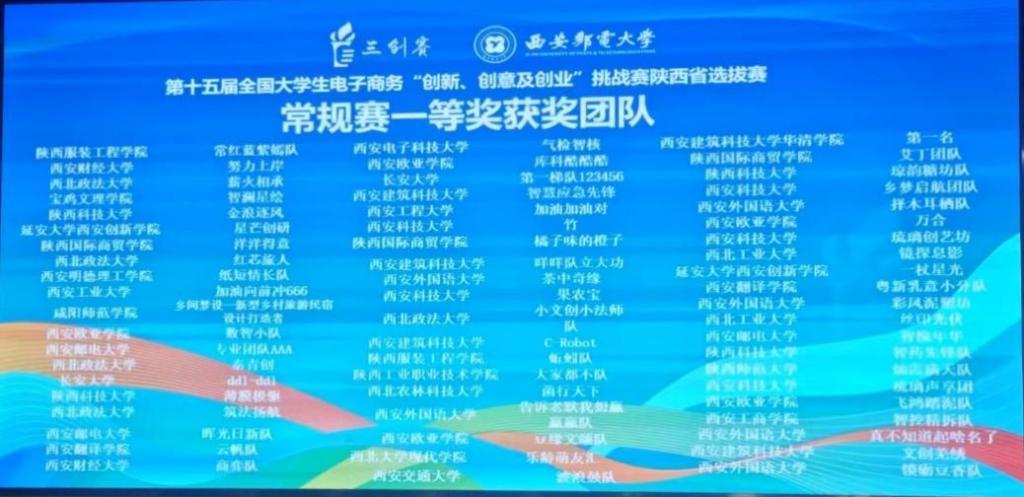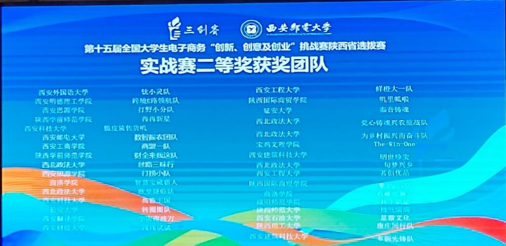 2025年5月10日,第十五届全国大学生电子商务“创新、创意及创业”挑战赛(以下简称“三创赛”)陕西省选拔赛于西安邮电大学(雁塔校区)举行,经过的激烈角逐,世界杯官网学生作品脱颖而出,其中“跃然纸上—剪纸产业的推动者”纸短情长队斩获常规赛道省级一等奖,“智联丝路—跨境电商的创新突围者”跨境E路领航队斩获实战赛道省级二等奖。
