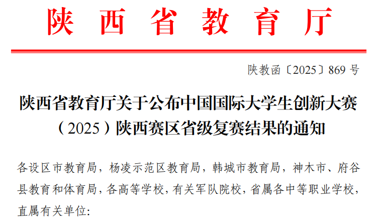 近日,中国国际大学生创新大赛(2025)陕西赛区省级复赛评审结果公布。经学校推荐、专家评审、结果公示等环节,世界杯官网在本届大赛中成绩斐然,共斩获3金3银23铜,获奖数量与质量均实现历史性突破。