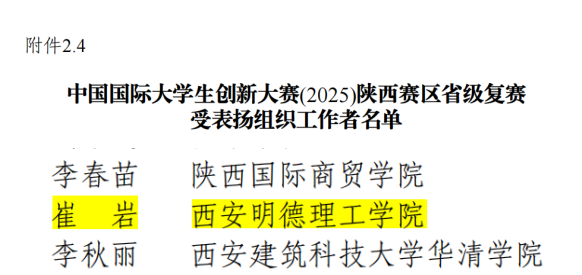 在荣获金奖的三个项目中,“高教主赛道”的“惟有香如故——古法香薰赋能长安香薰的开拓者”与“丝路领航——一带一路背景下跨境数字电商的革新者”两个项目表现尤为突出,成功晋级全国总决赛;“青年红色筑梦之旅”赛道的“爱我中华”火车团——“心桥相连·融慧融情融合—两岸高校文化融合创新营”项目,不仅夺得金奖,还成功入选陕西省“青年红色筑梦之旅”活动实践典型案例。在此次大赛中,学校被授予“受表扬单位”,执行董事张琳、创新创业学院副院长崔岩荣获“受表扬指导教师”,副院长崔岩同时获评“受表扬组织工作者”。