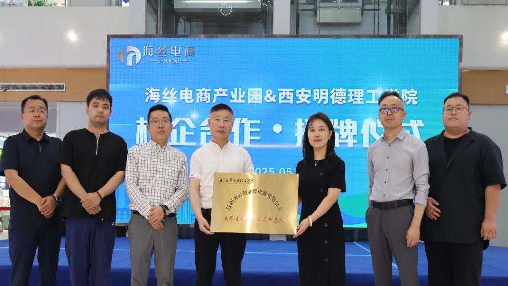 参观结束后,校企双方召开了座谈会。会上,正式向陕西海丝电商产业园授予“大学生创新创业实践基地”牌匾,这标志着双方战略合作进入实质性推进阶段。陕西海丝电商产业园负责人表示,将充分利用园区资源,为学生提供全方位的实践支持,助力学生成长成才。