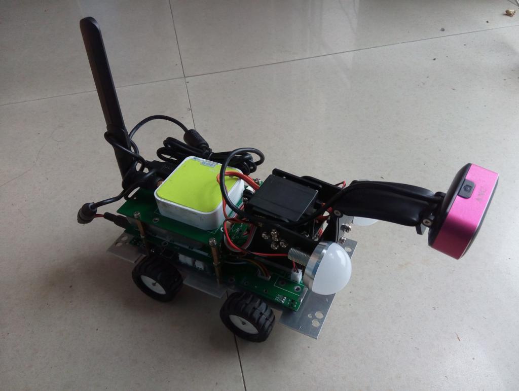 无线成像机器人采用普通智能安卓手机作为控制终端,控制机器人的运动,并实时显示机器人传回来的图像,同时无线成像机器人安装有二自由度云台,可以转动摄像头,调整视角。为了提高在黑暗环境下的成像效果,无线成像机器人的前端安装有亮度可调节的照明灯。该项目可以应用在狭小空间、恶劣、危险等环境成像。