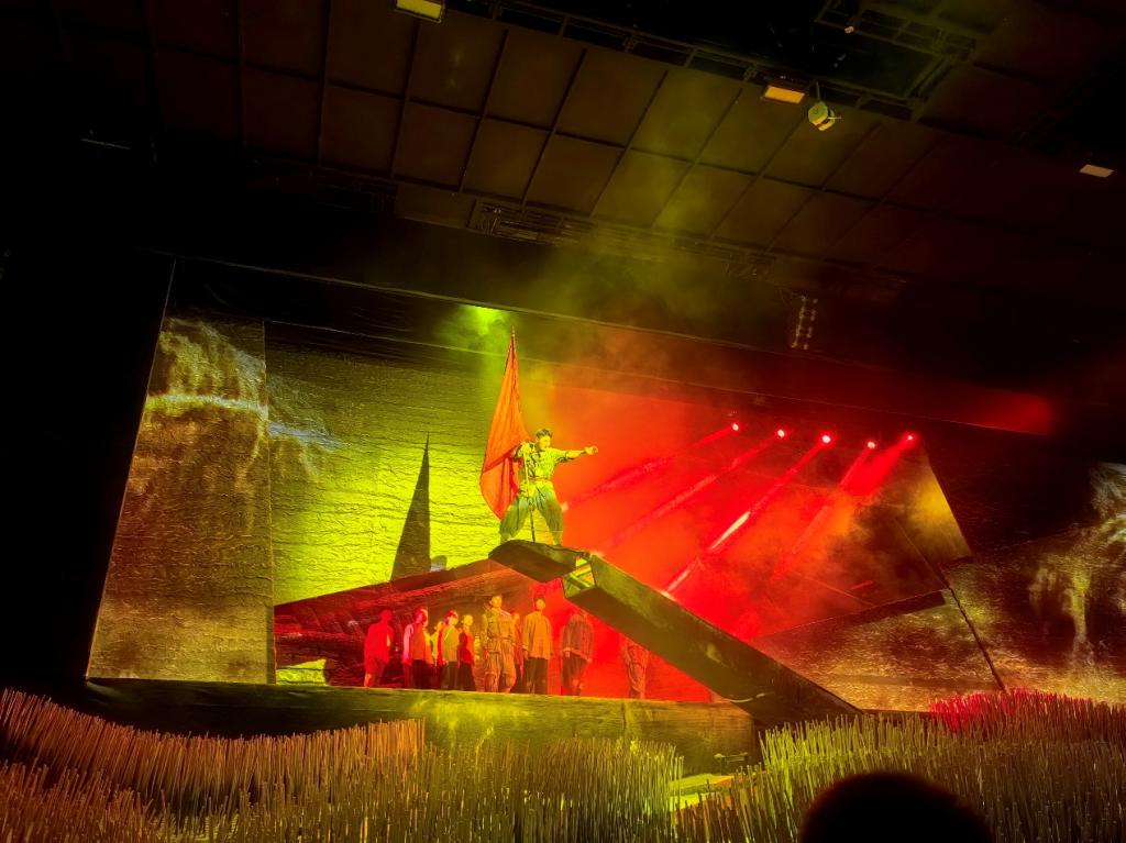 随后,同学们来到了延安红街,观看了沉浸式红色情景剧《再回延安》。“此后如竟没有炬火,我便是唯一的光!” 通过一个普通士兵刘宝顺的视角,带领观众穿梭在革命年代的延安风雪中。这场剧利用最新科技特效手段,通过倒叙的方式及“一座记忆的博物馆”“一簇燎原的星火”“一条漫漫长征路”“一面不朽的旗帜”四个空间场景,让同学们亲身体验红军战士的艰辛历程。《再回延安》一场红色岁月的盛宴,磅礴而又感人至深。这是一次关于延安的再次回忆,一场让我们真实感受那段真实历史岁月的旅行。