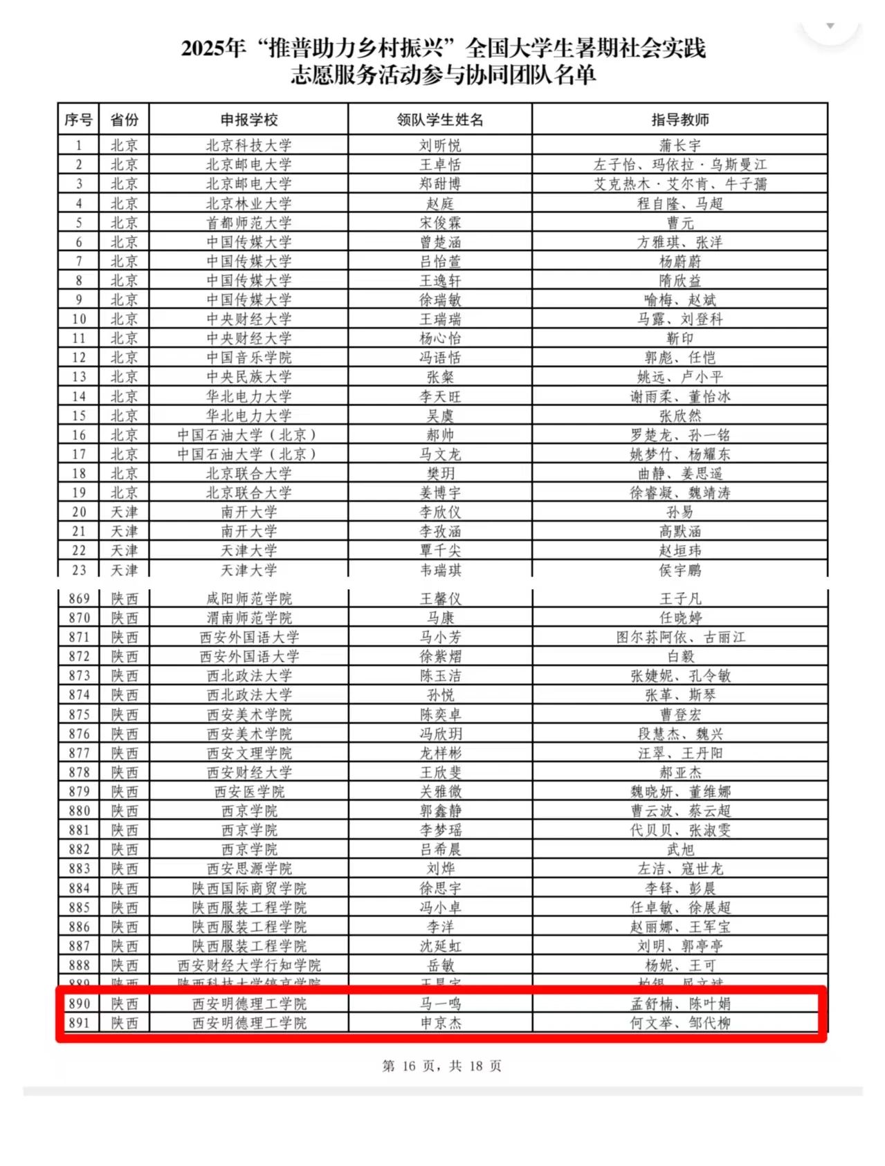 7月3日,教育部正式公布《2025年“推普助力乡村振兴”全国大学生暑期社会实践志愿服务活动入选团队名单》,学校两支暑期社会实践队从全国 1680 所高校的 8013支团队8万余名师生中脱颖而出,成功入选!