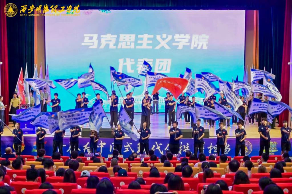 学校党委副书记、副校长刘星为艺术与设计学院、明德科技职业学院社会实践活动团授旗。