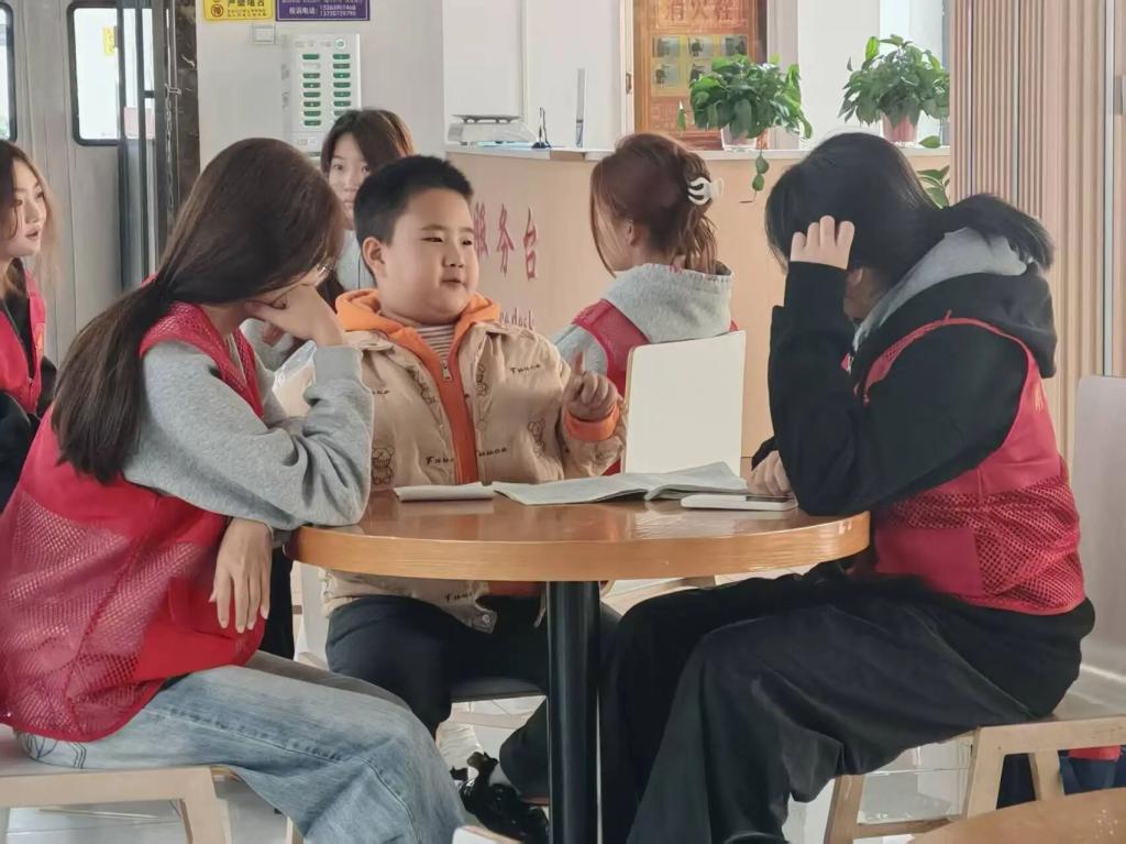 2025年11月1日,世界杯官网青年志愿者服务团在餐厅二楼开展了第二次校内务工子女义务家教活动。志愿者们带着饱满的热情,如同点点星光,照亮孩子们的求知之路,用持续的陪伴为成长助力。