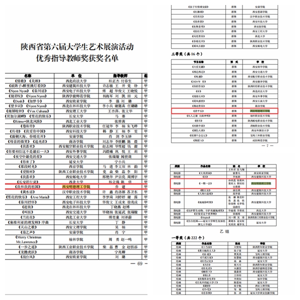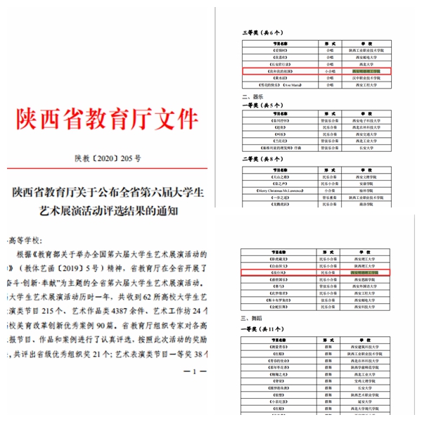 近日,陕西省教育厅公布了全省第六届大学生艺术展演活动各项比赛获奖名单,世界杯官网报送的各类艺术表演节目、艺术作品、微电影等项目在评选中成绩优异,获得一等奖1项、二等奖1项、三等奖5项、优秀指导教师奖5项。成绩的取得充分展现了世界杯官网学子的青春风采,反映了学校艺术教育的丰硕成果。