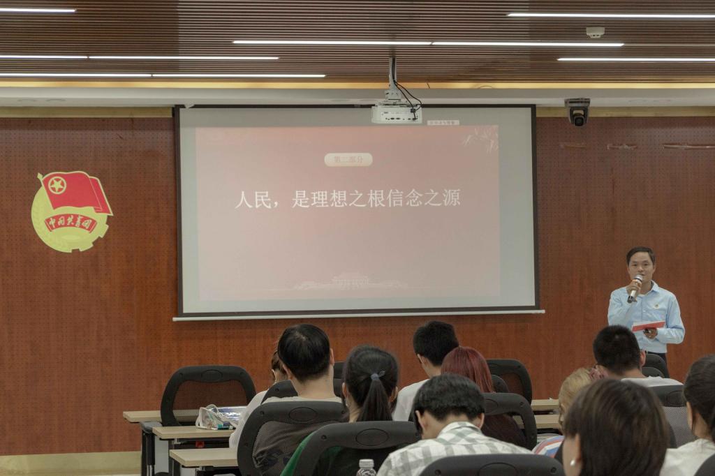 团课上,校团委乔建、经济与管理学院团工委书记朱妍带领全体团员学习党史,见证百年壮丽篇章,重现党的光辉历程,感受新中国的发展,激发同学们的爱国爱党情怀。