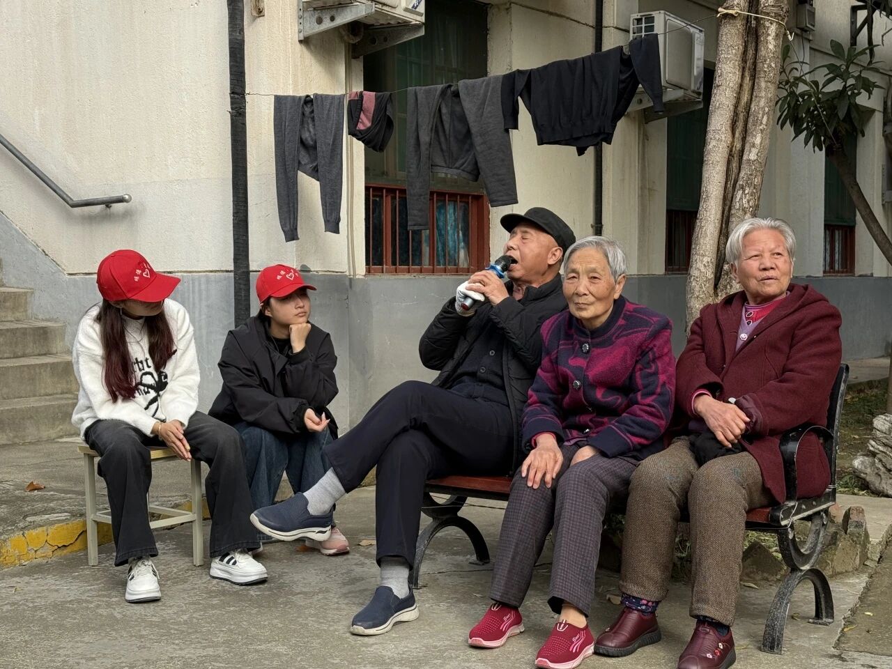 席间,一位爷爷兴致盎然地提议唱几首红歌,志愿者们立刻默契配合,迅速搬出音响调试妥当,而后围坐一旁静静聆听。随后,志愿者们也纷纷主动接过话筒,献上动听的歌谣。